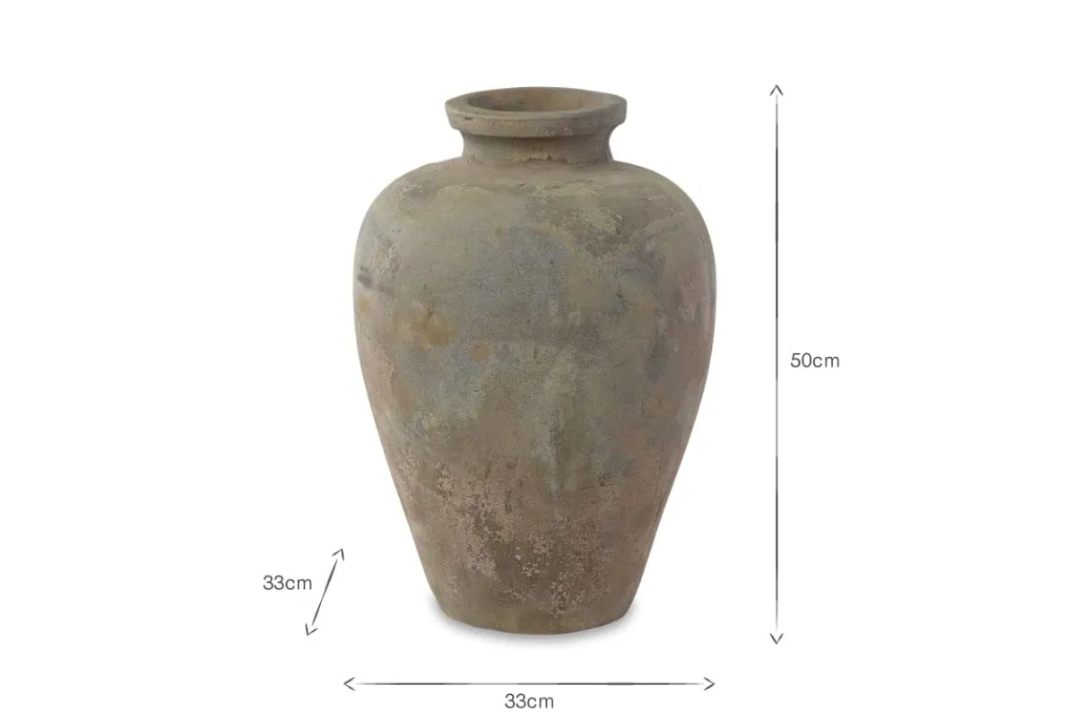 These traditional urn shaped clay pots are handmade from clay with a raw natural finish. We love the aged look of these pieces. The pots are made using traditional coiling techniques in Vietnam. Please note these pots are frost proof and there are holes in each base for drainage.