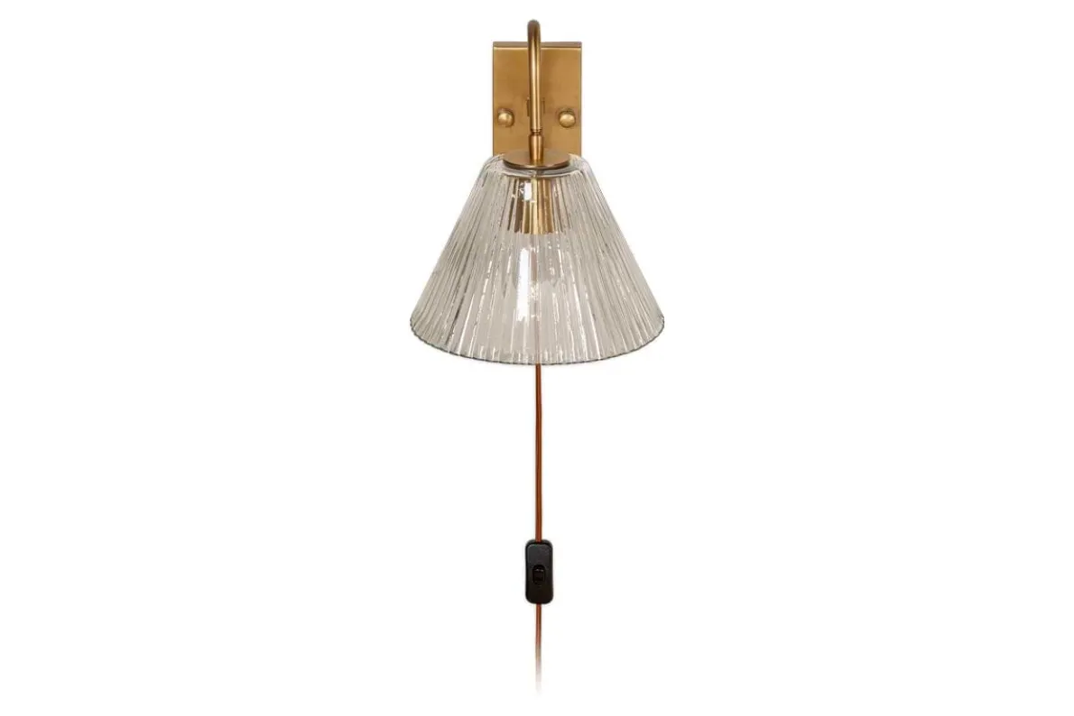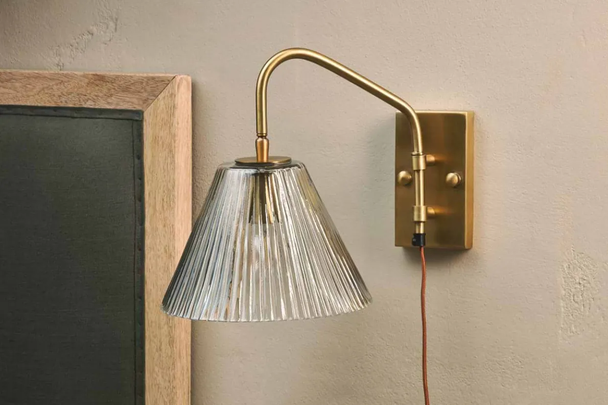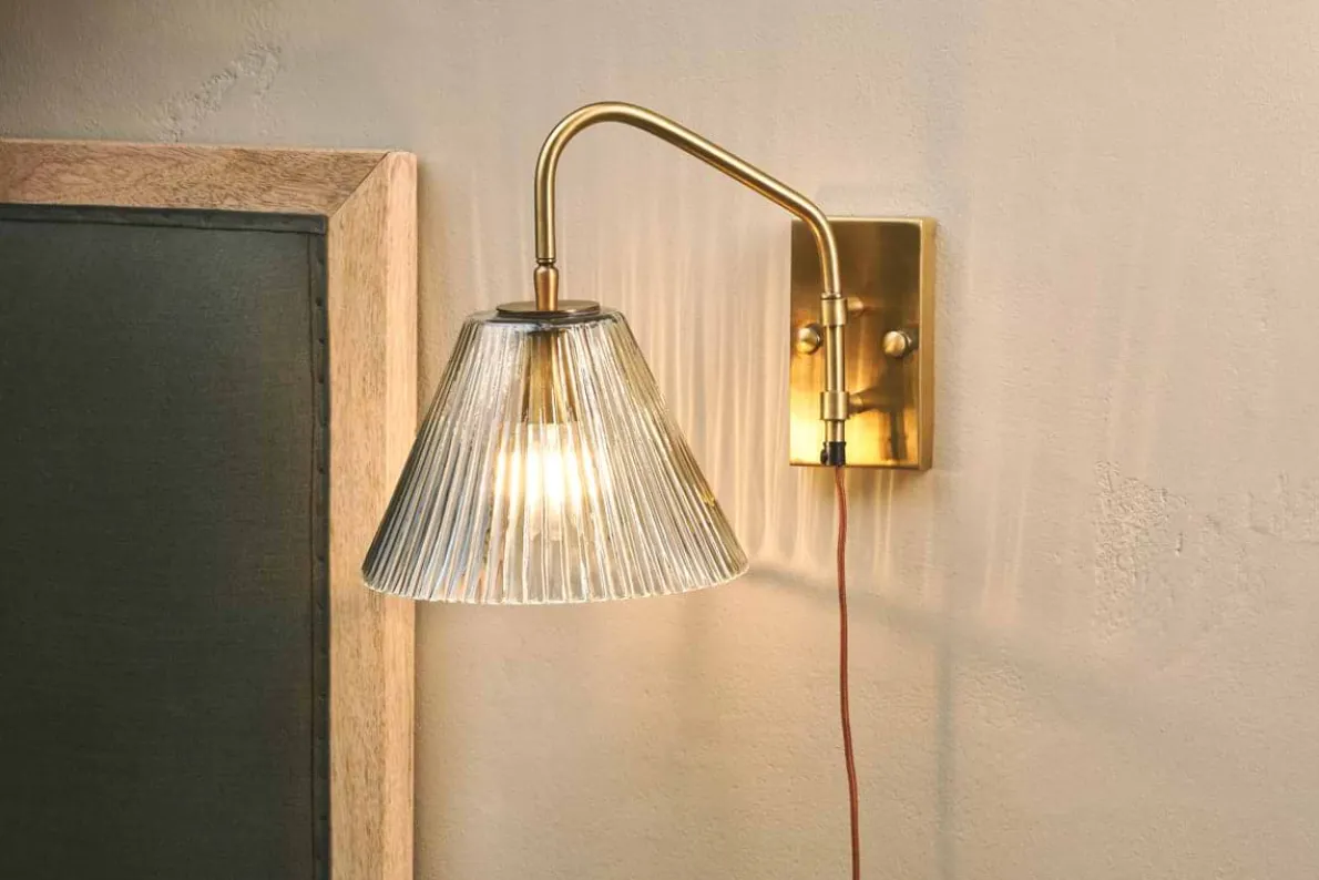 Our Akoli Glass Wall Lamp has a delicately fluted glass shade which diffuses the light softly andbrings a beautifully warming glow to a bedside or living space. Contrasted by the muted eleganceof the antique brass neck and base plate, and a rust cable for a nkuku finishing touch, it’s acharming light with a timeless look. This wall lamp is a quick and simple way to bring stylish lighting to a room without needing to rewire or call an electrician.