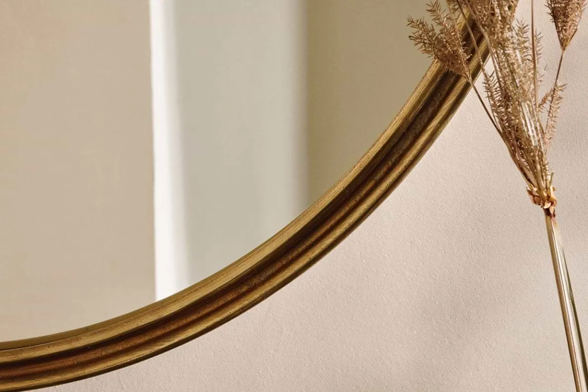 This striking mirror makes a stylish statement thanks to its classic round shape and eye-catching size. Its slim frame is crafted from cast aluminium with an elegant curved edge. The warm antique brass tones are enhanced by an imperfect textured finish, giving this mirror a sophisticated vintage quality. Use it to bring a touch of elegance to your home or place in a hallway to create the impression of additional light and space. Style with other mirrors from our Almora collection for a harmonious look.