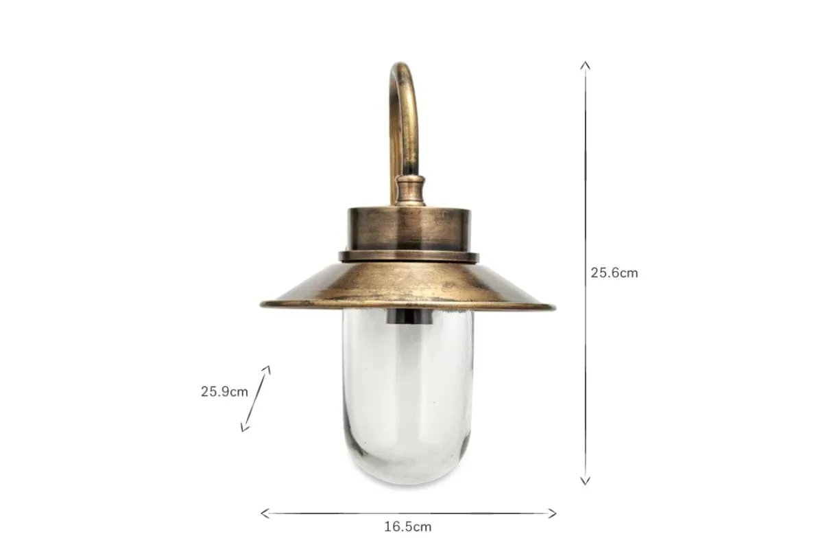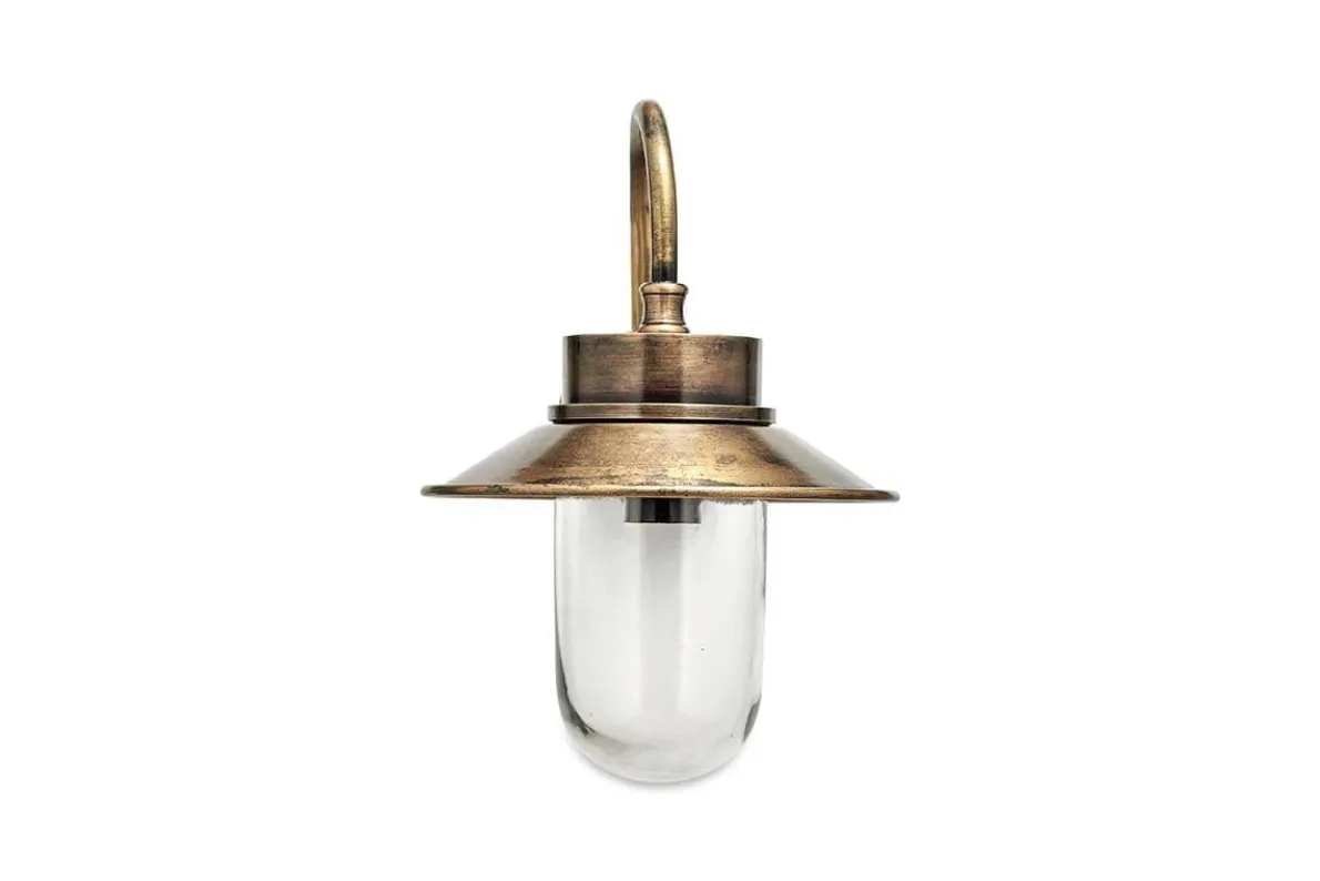 Our striking Alwar outdoor light adds a sense of grace to any outdoor setting. The antique brass patina of the stylish swan neck and lamp head pares elegantly with the clear glass shade. Simply unscrew this shade to place a bulb within it. This iconic design works well with traditional and contemporary homes alike and produces a soft warm glow.