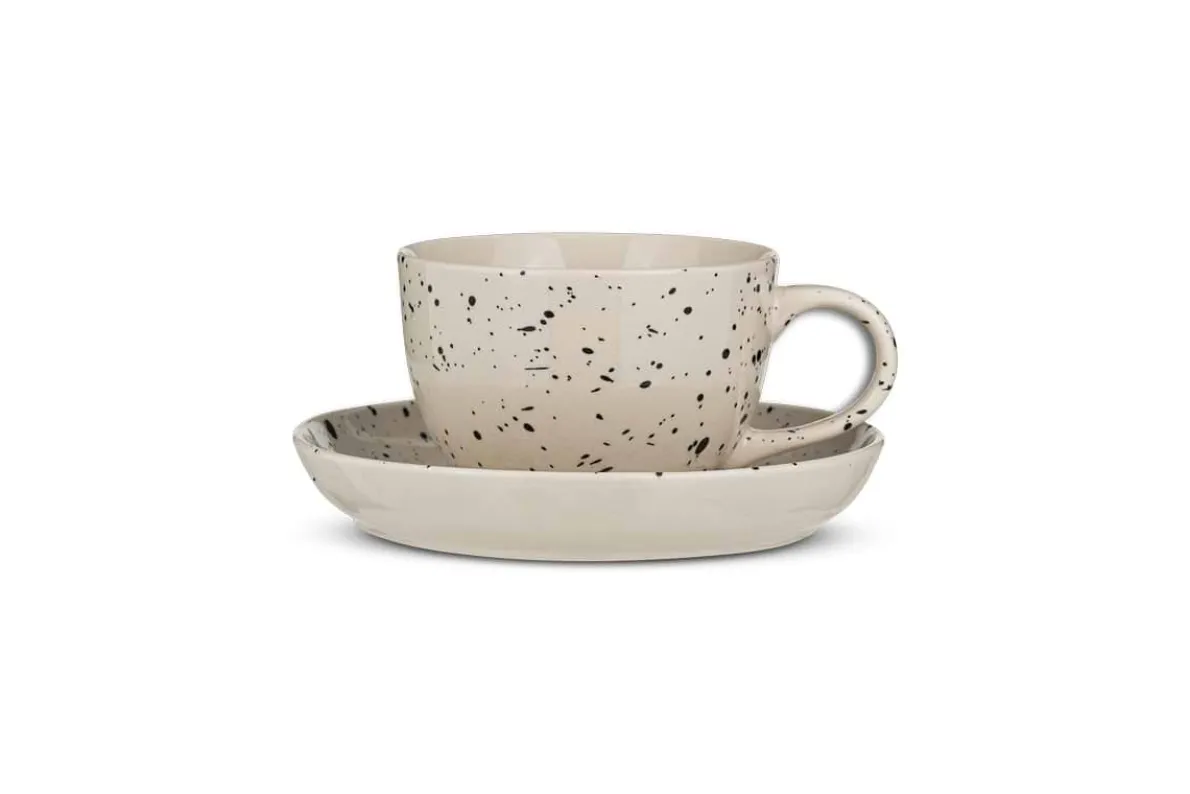 Our Ama Cup is handmade in Vietnam by skilled artisans using a wealth of techniques, some of which are thousands of years old. The pieces are shaped by hand, incorporating traditional and contemporary influences and decorated with an eye-catching black splatter finish. This stylish Cup and Saucer have a smooth glaze finish and beautiful tactile quality.