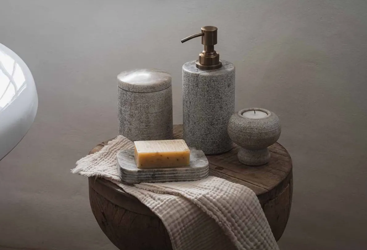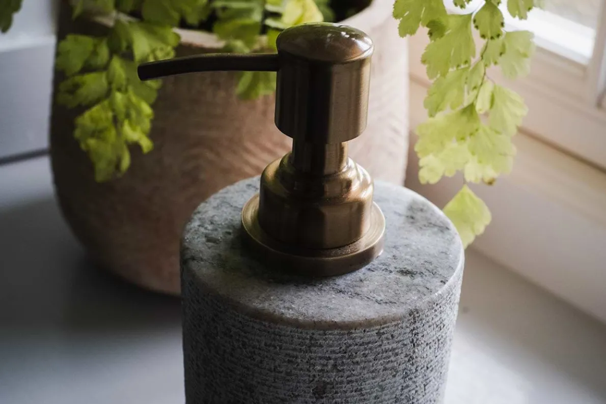 Expertly crafted from natural grey marble, our Asana soap pump pairs a traditional shape with hand-etched lines, creating a rustic, organic feel. The pump dispenser is both hard-wearing and luxurious. Place in your bathroom to add a touch of spa-like tranquillity to your home. The natural variegated veins in the marble give their own unique look to each piece. Pair with other products from our Asana marble collection.