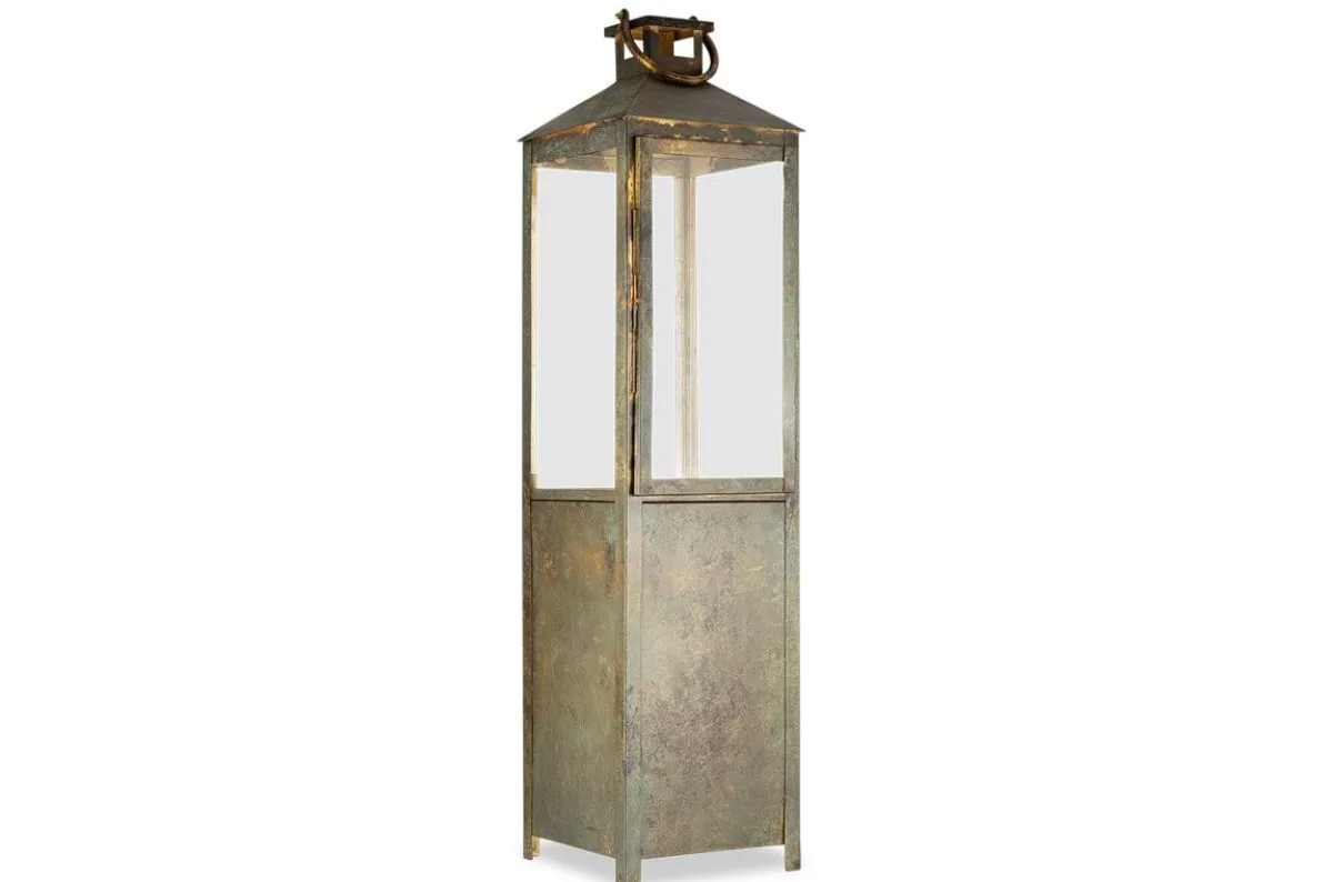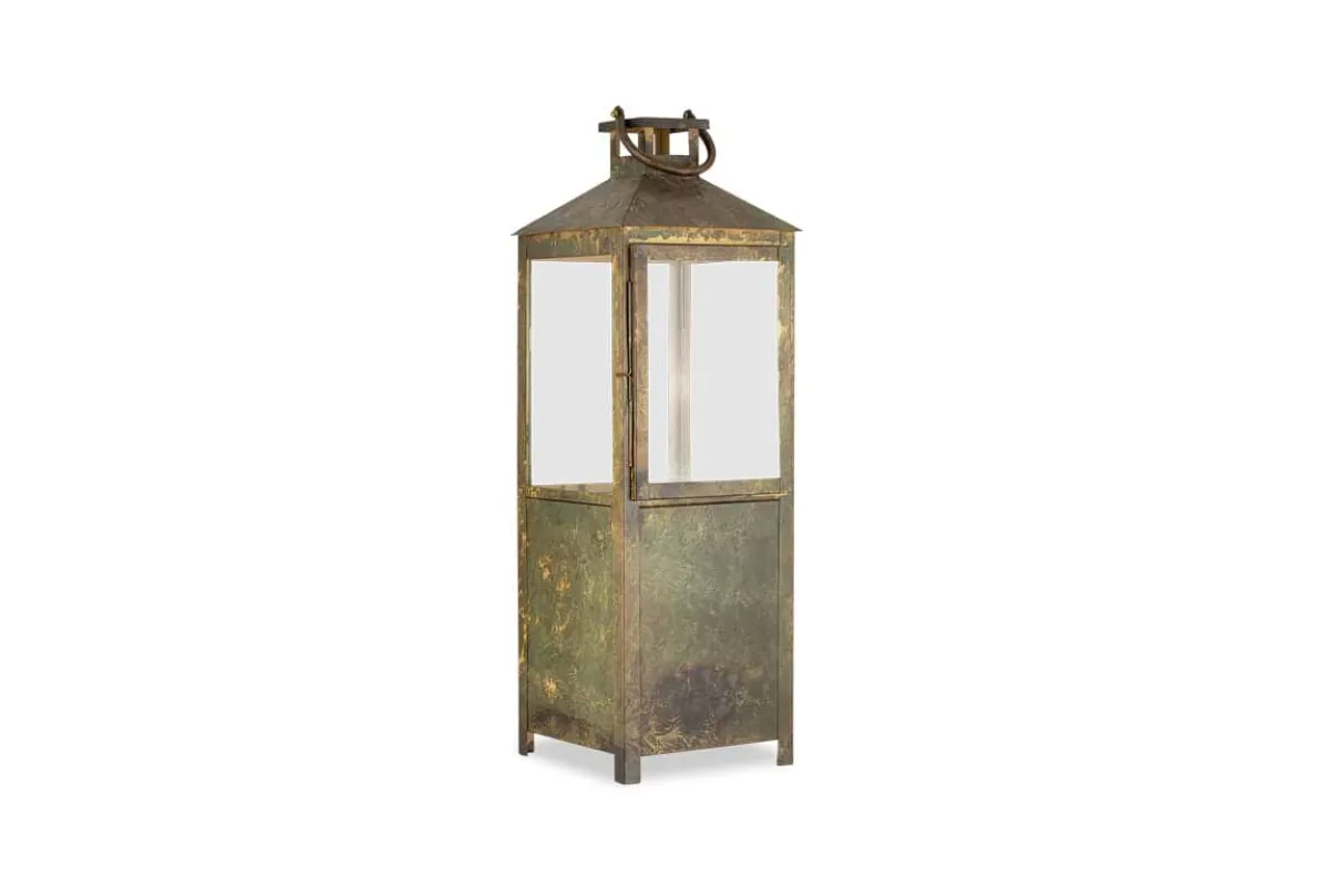 Our large Asharu Lantern is a striking statement piece. It has a traditional look and feel and real room presence with elegantly tall proportions and a gorgeous aged patina finish that brings texture and interest to a living space. The authentic design adds the perfect finishing touch to a room, lifting a space with its standout silhouette. Perfect displayed in a hallway or in a living space, or looking resplendent as a pair on either side of a fireplace or entrance. Use singly, with the smaller Asharu Lantern or as a pair for striking effect. Pair with our rustic pillar candles.