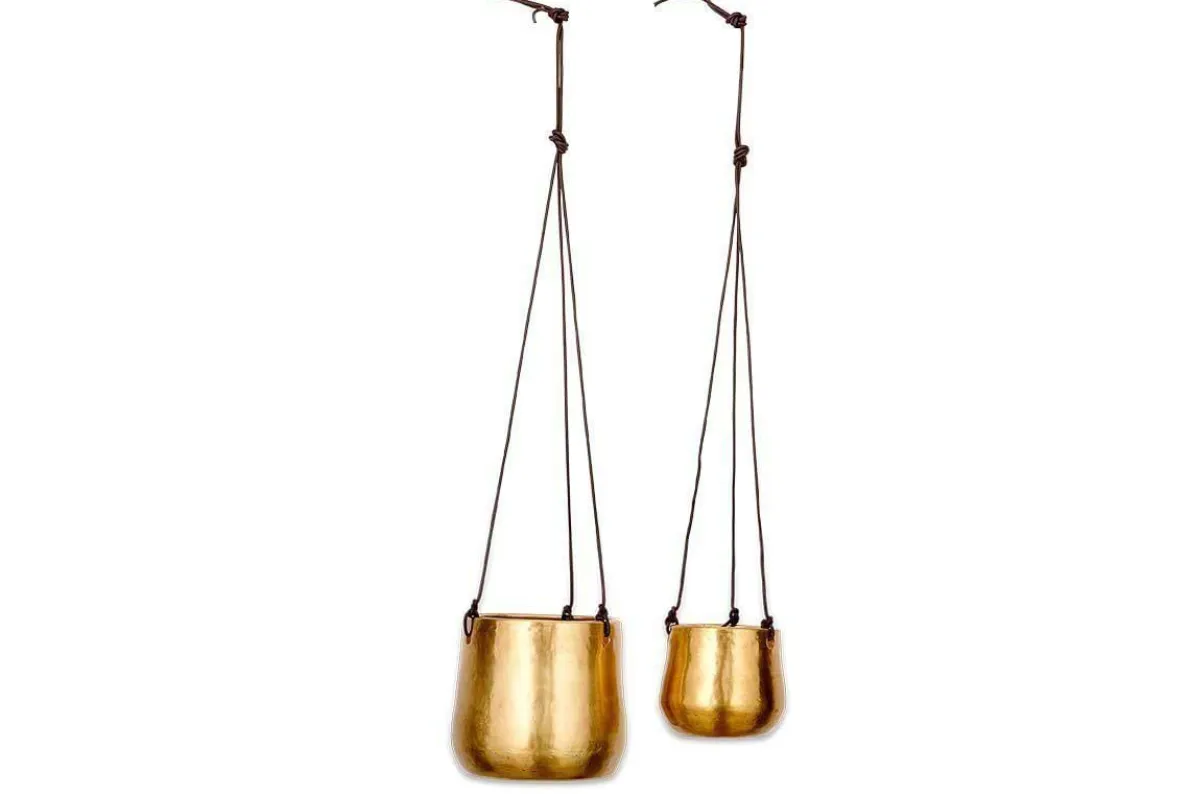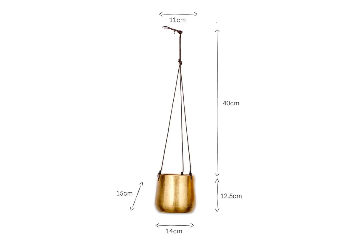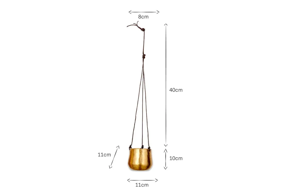 The golden hues of brass of our Atsu planters really extenuate the smooth contours of this elegant hanging pot. The brass is a striking back drop against green foliage making an eye -catching combination. Each planter is hung with leather ties.