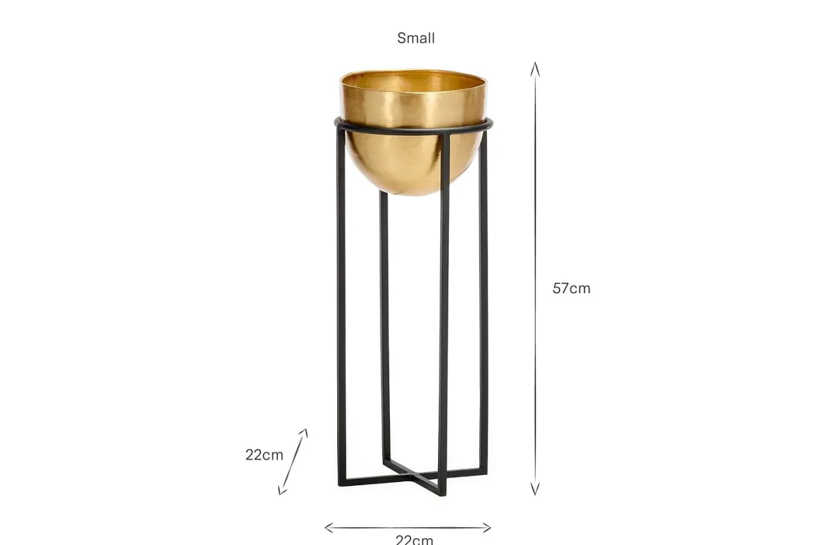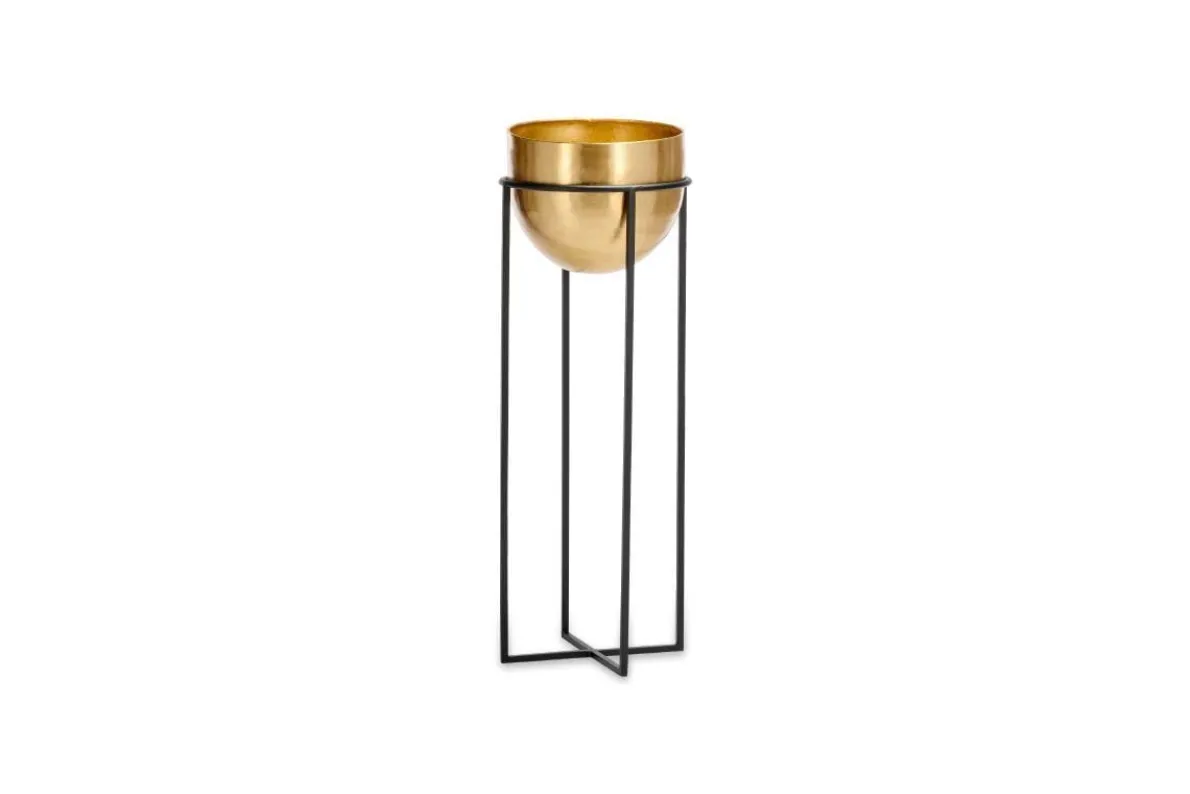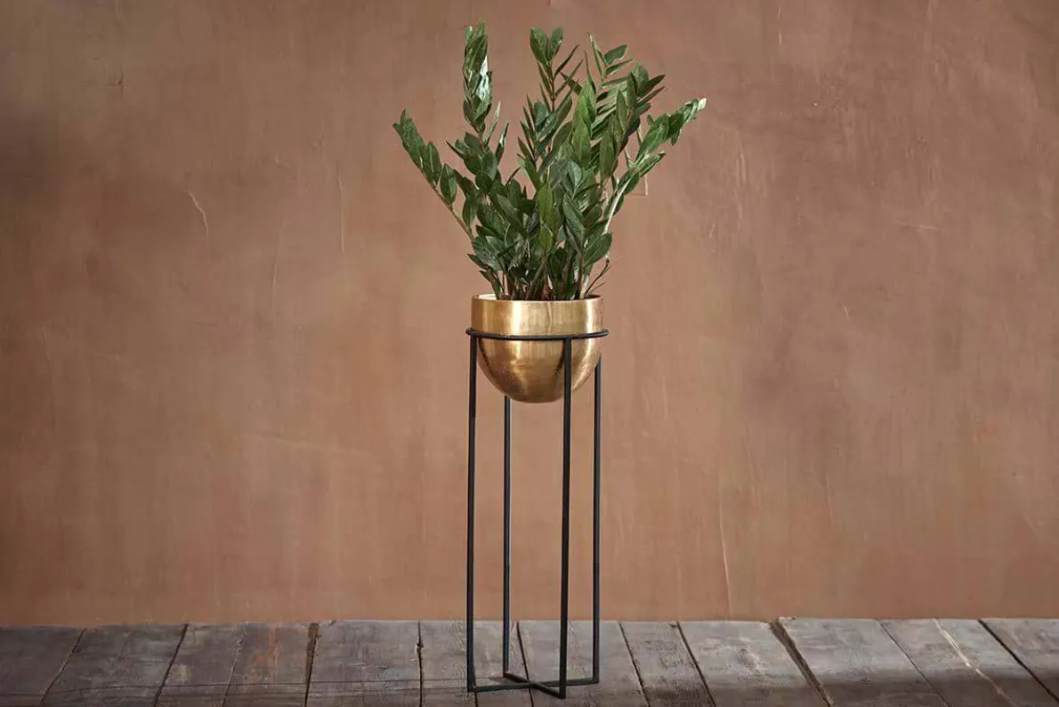 Decorative planting makes a stunning interior feature and the warm brass tones of these striking Atsu standing planters will add an opulent feel to an indoor space. The brass planter is shaped using traditional tools and features a tactile, imperfect finish. The planter sits neatly in a solid iron stand. Style in an entrance hall, living space or bathroom for an eye-catching, decorative touch.