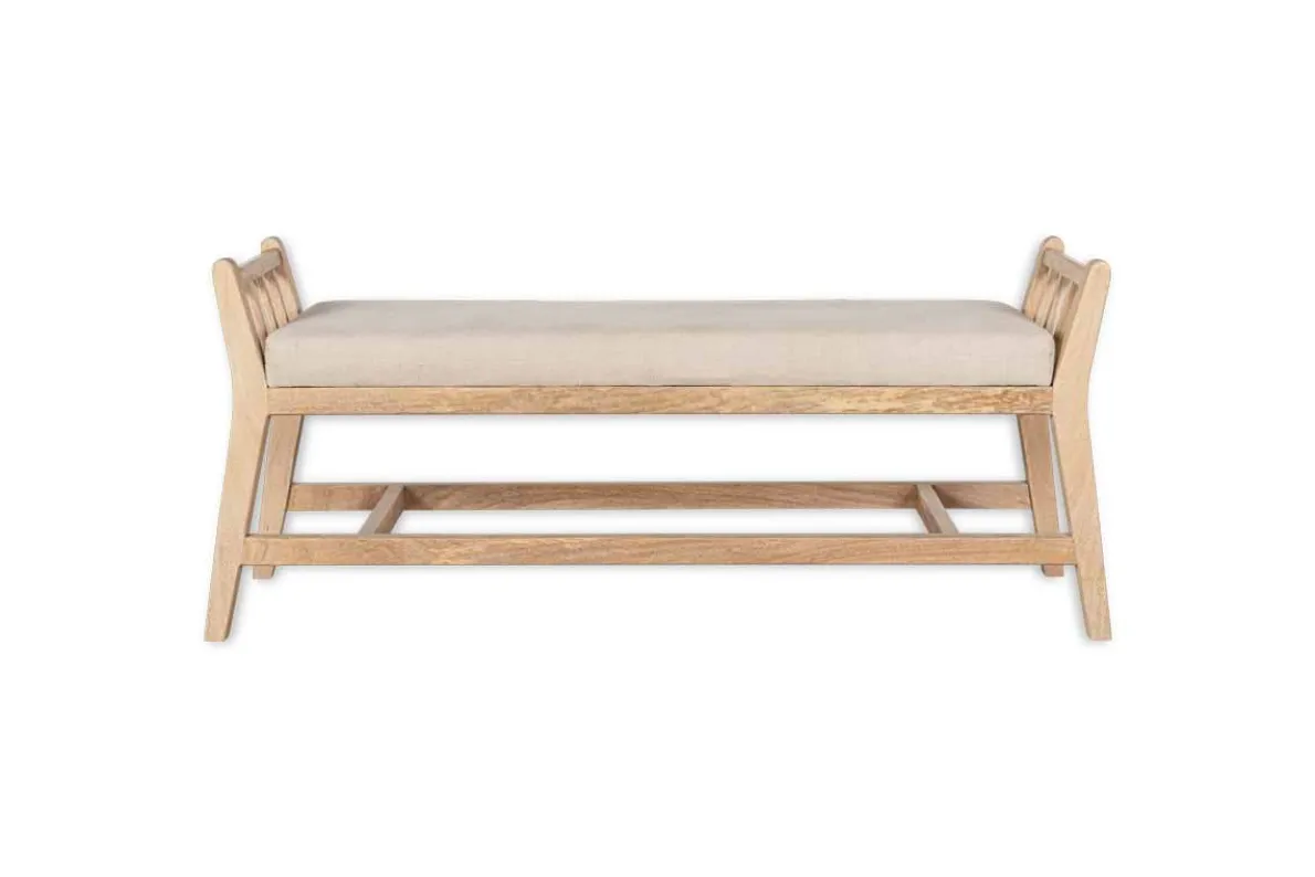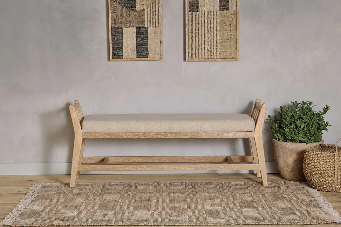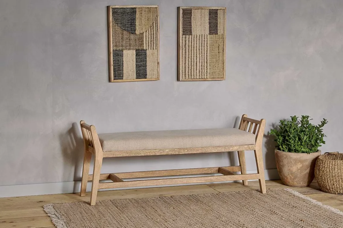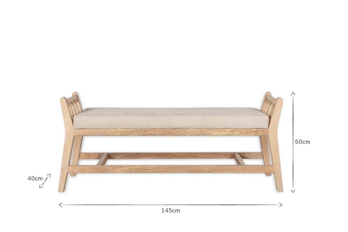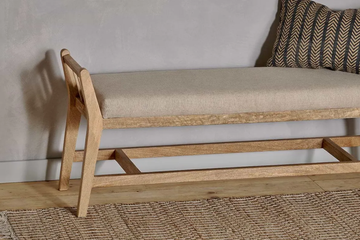 Our Avanthi sleigh bench is a beautiful example of traditional craftsmanship with its hand-carved mango wood frame and natural linen upholstery. This classic piece would make a beautiful addition to a hallway, living room or bedroom and brings texture and character to any interior scheme. This bench is crafted from mango wood, whereby the trees are only cut down once they have stopped bearing fruit.