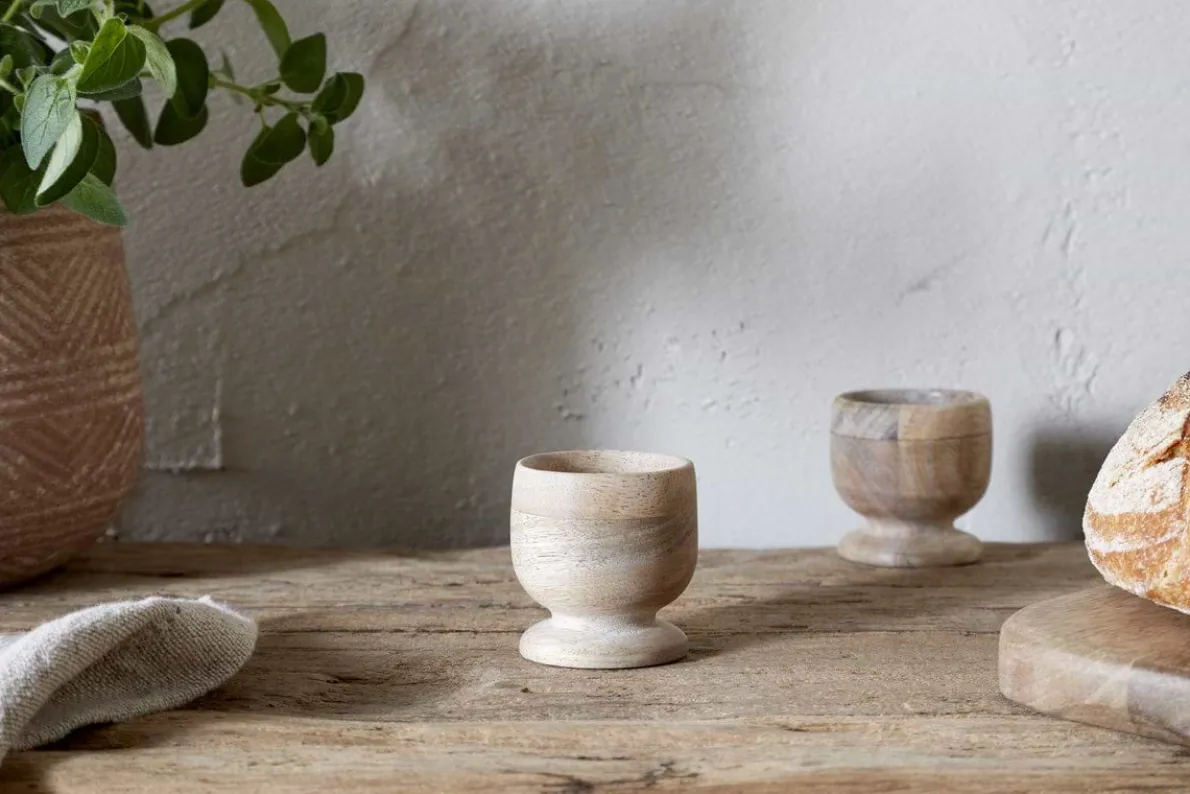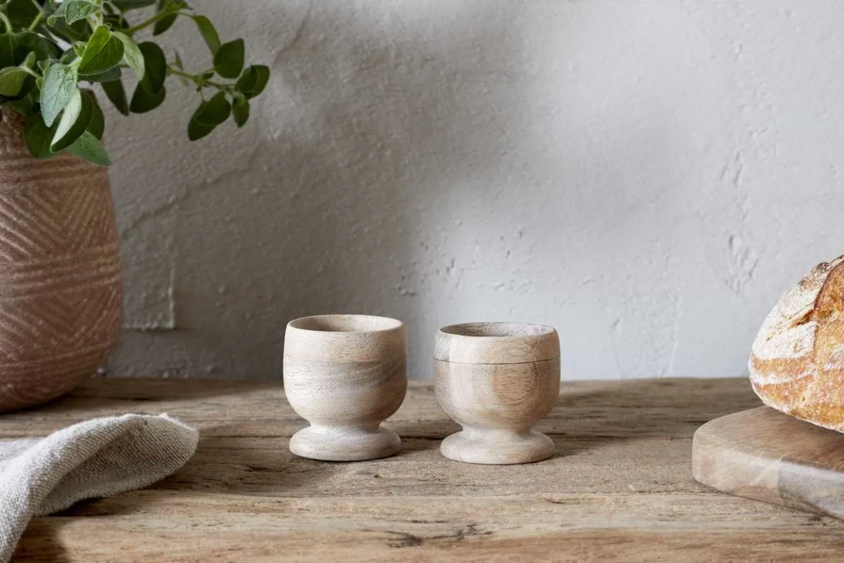 A practical and stylish addition to your breakfast table, this set of two egg cups features a smooth, rounded shape and warm natural tone. The compact size cradles eggs securely, while the simple design pairs effortlessly with a range of tableware. Ideal for everyday use or relaxed weekend brunches.