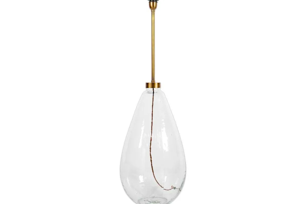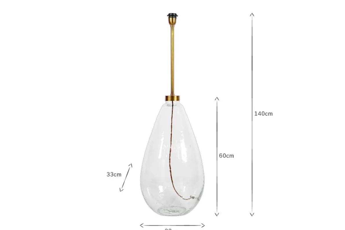 The Baba glass floor lamp fuses the subtle organic qualities of our signature Nkuku Baba design with a strikingly modern look. The over-sized glass base supports an extended brass pole designed to showcase our tall dia lampshade. This new shape is a move away from a traditional pole and tripod floor lamp but still provides the same practical use and purpose. The Baba floor lamp is statement piece that will provide a focal point in a living space. The Baba is mouthblown from recycled glass into a giant mould. The glass is hammered using traditional tools, providing this shimmering textured finish that adds to the beauty of this standout lamp.