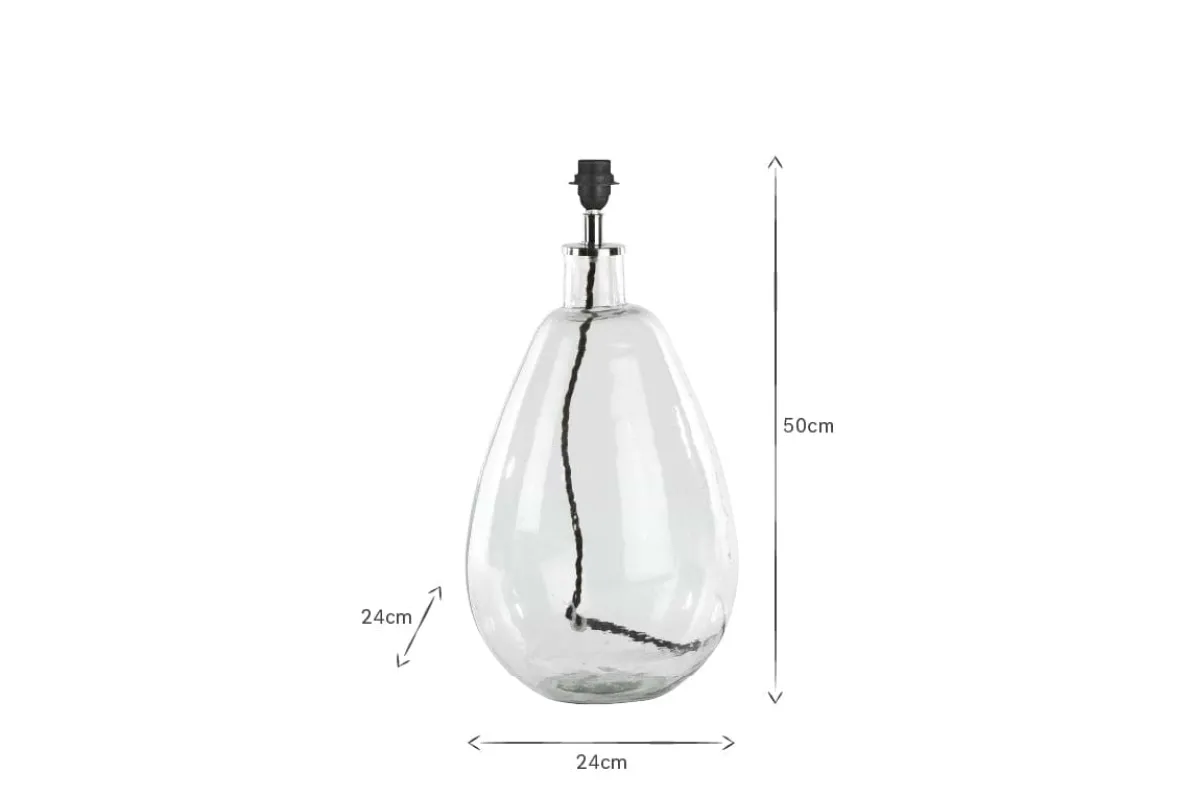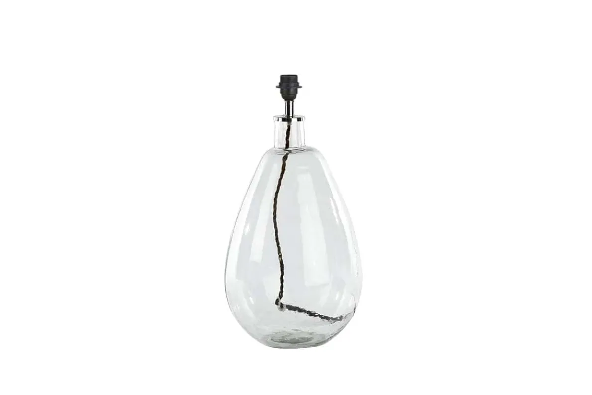 We think this elegant lamp base is divine. It is crafted from recycled glass by skilled artisans in Rajasthan. The hammered effect is created by hand when the glass is molten giving a beautiful textured and imperfect finish.
