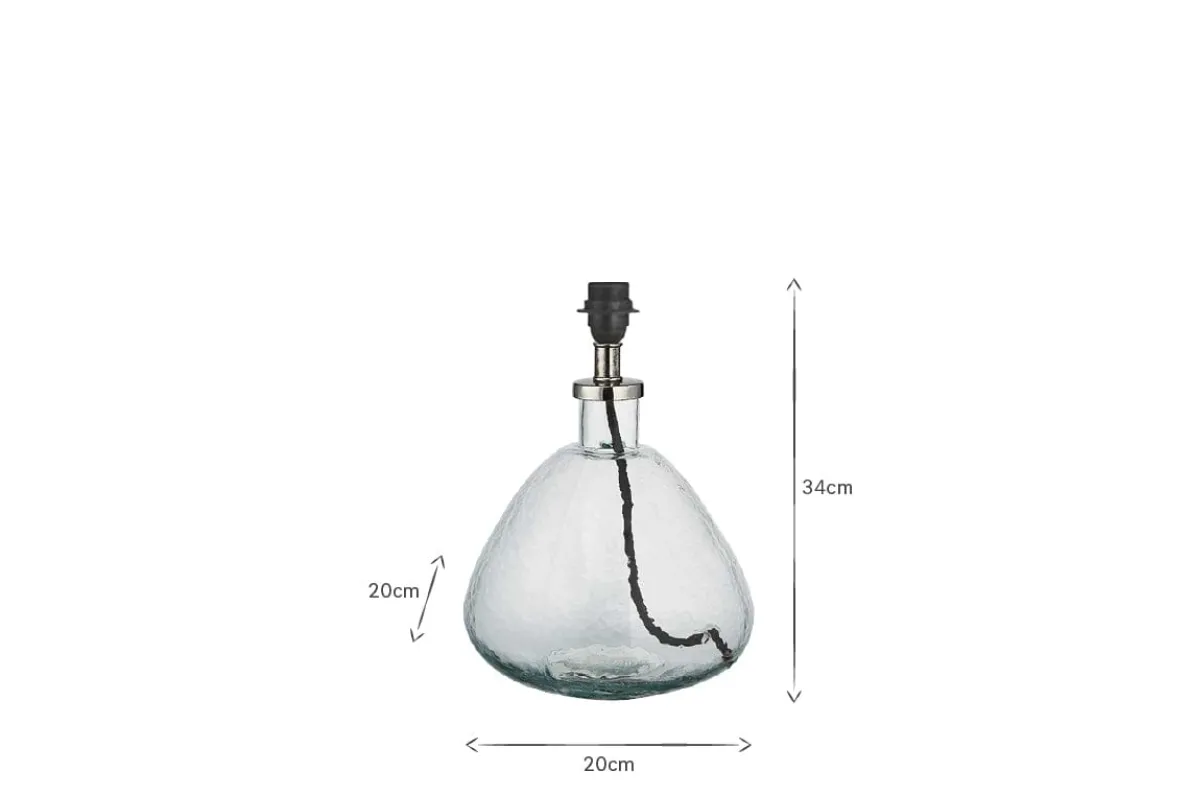 We think this elegant lamp base is divine. It is crafted from recycled glass by skilled artisans in Rajasthan. The hammered effect is created by hand when the glass is molten giving a beautiful textured and imperfect finish.