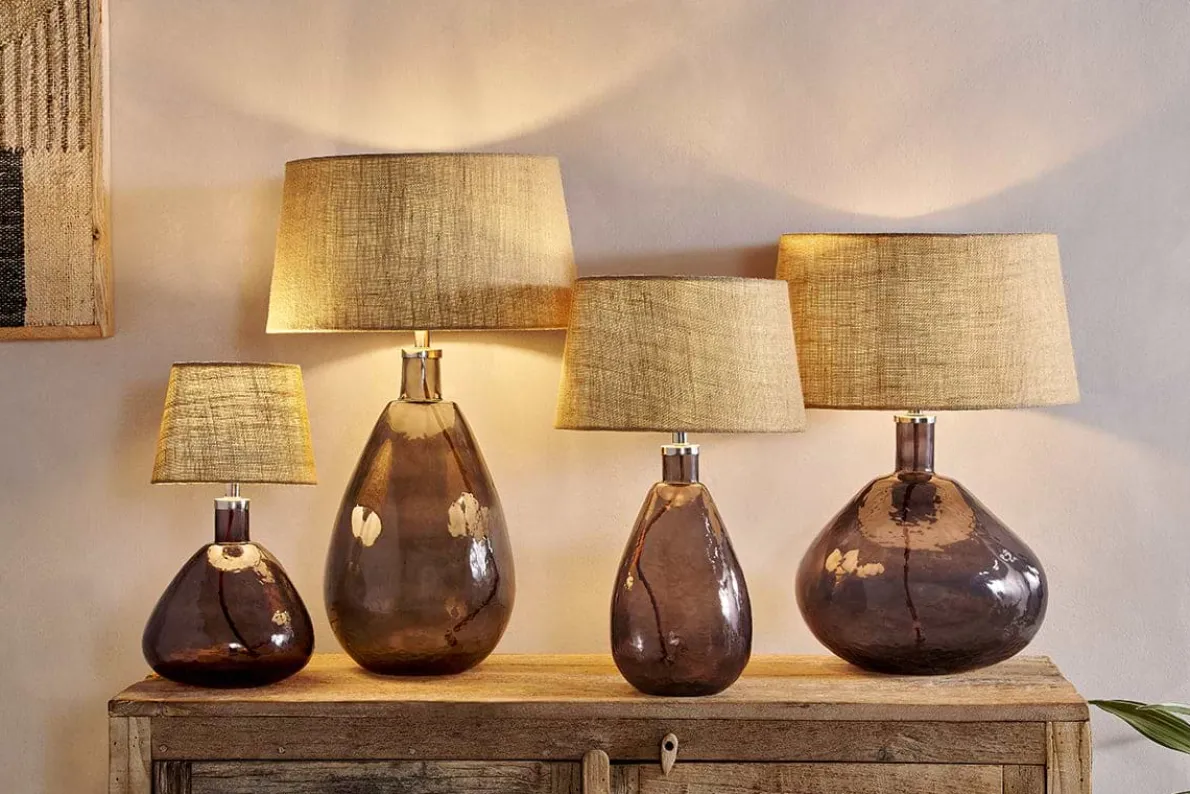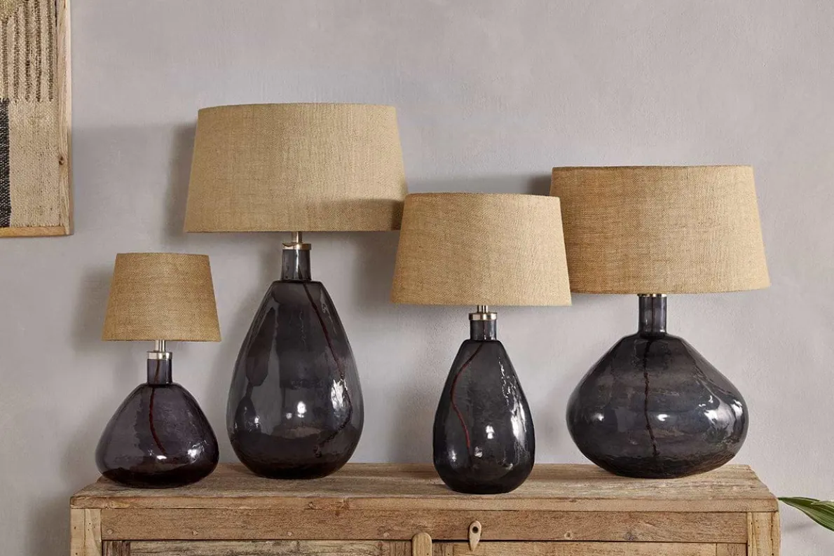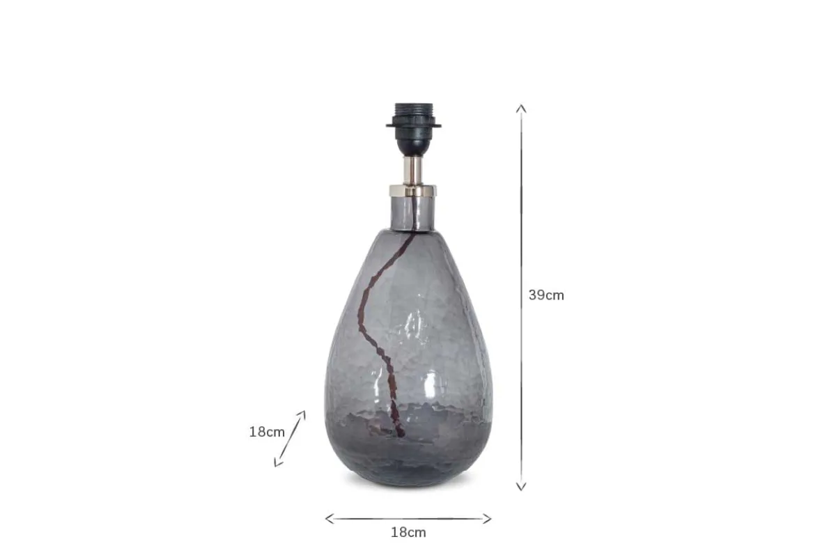 The slender and elegantly curved form of our organic-shaped Baba table lamp is skilfully crafted from recycled glass with a soft, textured hammered finish. This is a statement piece that adds natural, welcoming warmth to your home, whether placed on a sideboard, an entrance hall table, or by your bedside for a unique ambiance. The smoky hue of this lamp base enhances the rest of your furnishings and looks beautiful when styled with a Dia jute lampshade to complete the look.