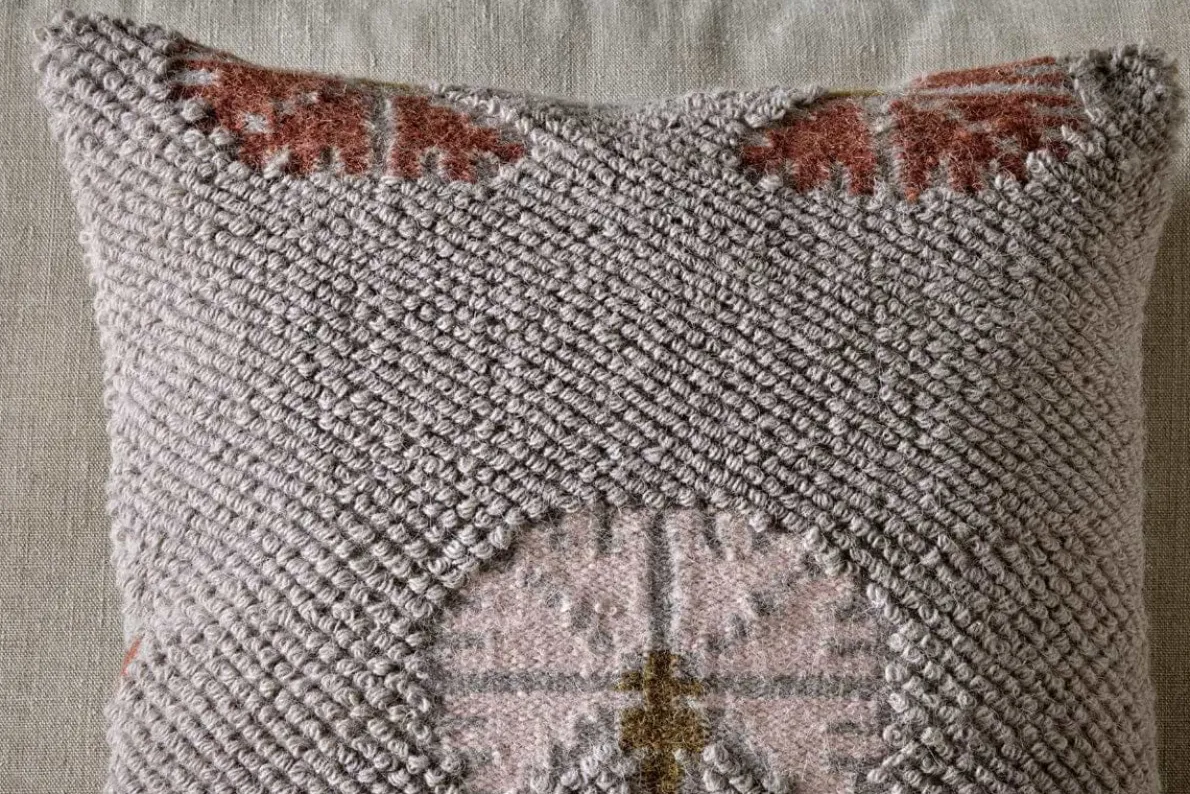 Hand crafted on age-old looms, our Bagru cushion cover marries ancient Indian craftsmanship with contemporary style. The traditional Indian floral design is intricately woven into the fabric and presented in soft, muted shades of pink and grey. We love the blend of wool and cotton to combine natural texture with natural comfort. This cover is perfect for adding understated elegance and warmth to your living space. Also available in a rectangular shape. Our feather cushion inners will accompany your cushion cover perfectly. Please note, the size of the cushion inner will display slightly larger than our cushion covers to allow for a plump finish when put together.