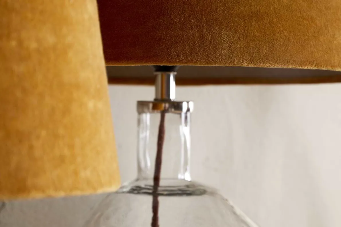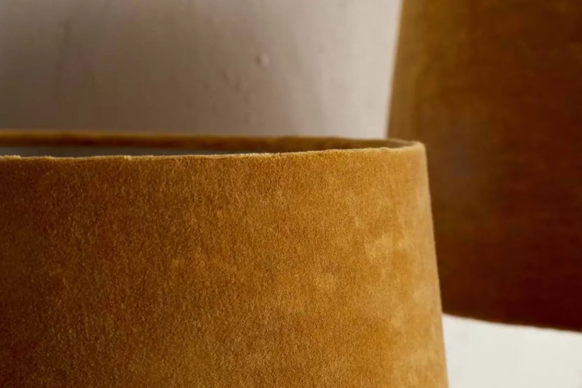 Blending the soft sheen of velvet with the natural texture of linen, this lampshade offers a subtle contrast and a tactile finish. Its gently woven fabric allows light to filter through beautifully, creating a warm, diffused glow. The rich colour palette adds bold elegance, making it a striking feature in any interior.