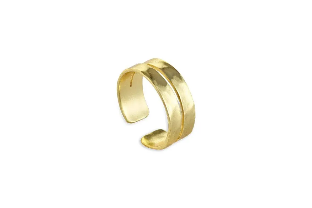 The simple, elegant Bolari double band is the perfect combination of wearable and stylish. The thick gold plated bands look striking and can be worn as a standalone ring or layered with other designs.