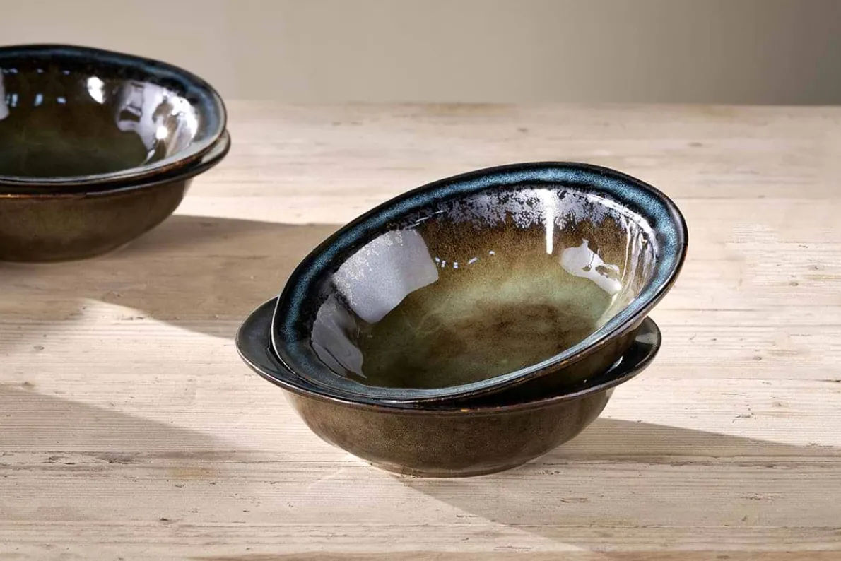 The classically simple design of these ceramic Cali bowls are given a rich, warm aesthetic with an eye-catching glaze that reacts in the kiln to bring out earthy bronze and rock-pool blue hues. Each piece is unique thanks to variations during the firing process. Perfect as generous, everyday bowls for soup or cereal, the striking colouring gives every serving a cafe-style lift. For a sophisticated table setting, style with the rest of the Cali collection.