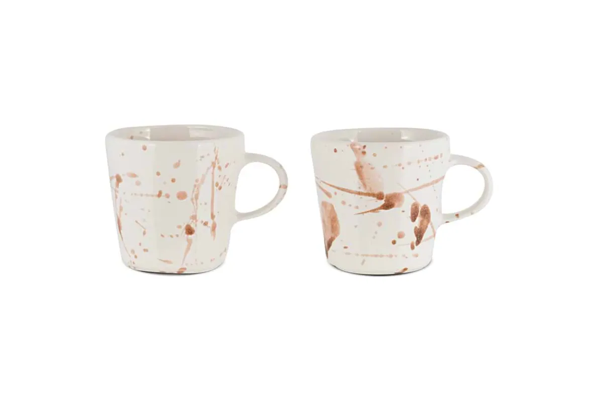 Introducing a new mug shape for nkuku; we love the extra height and comfortable handle size that gives the Canela mug elegant yet robust proportions that fits perfectly in the hand. This is everyday, casual ceramic ware, with a splash of character in the form of a hand-applied cinnamon coloured glaze that coordinates with our Canela serving bowl. This is a set of two.