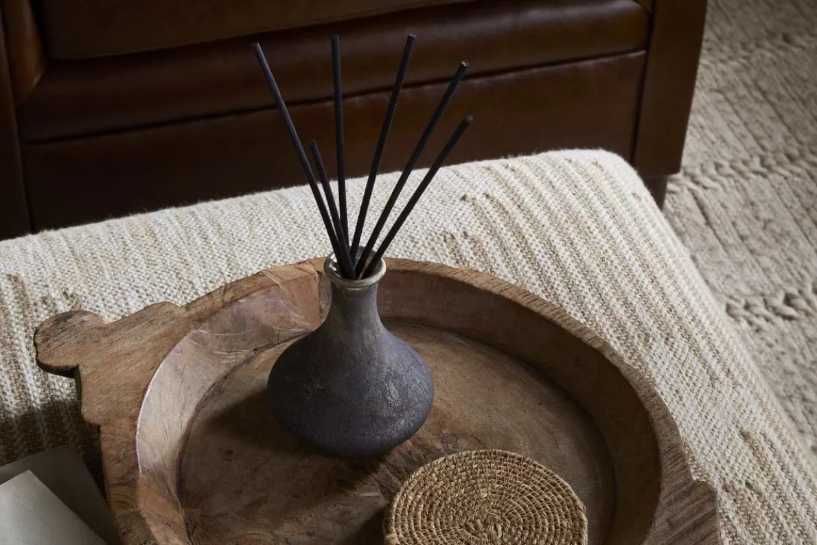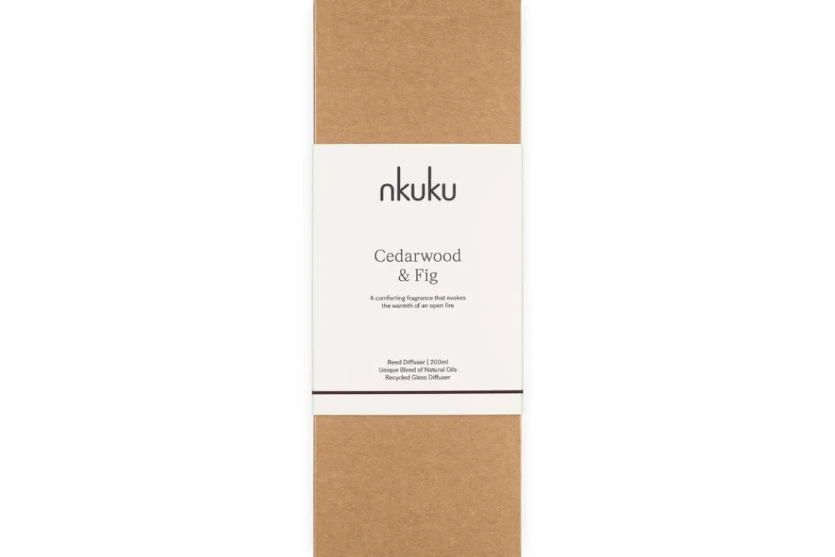 This reed diffuser is made in the UK by a family-run business, using a bespoke fragrance created exclusively for Nkuku. Woody notes of cedarwood, aromatic smoke, and honeyed fig evoke the warmth and comfort of a crackling fireside. The vessel is finished in one of Nkuku’s iconic textured styles and is designed to be reused as a small vase once the fragrance has dispersed.