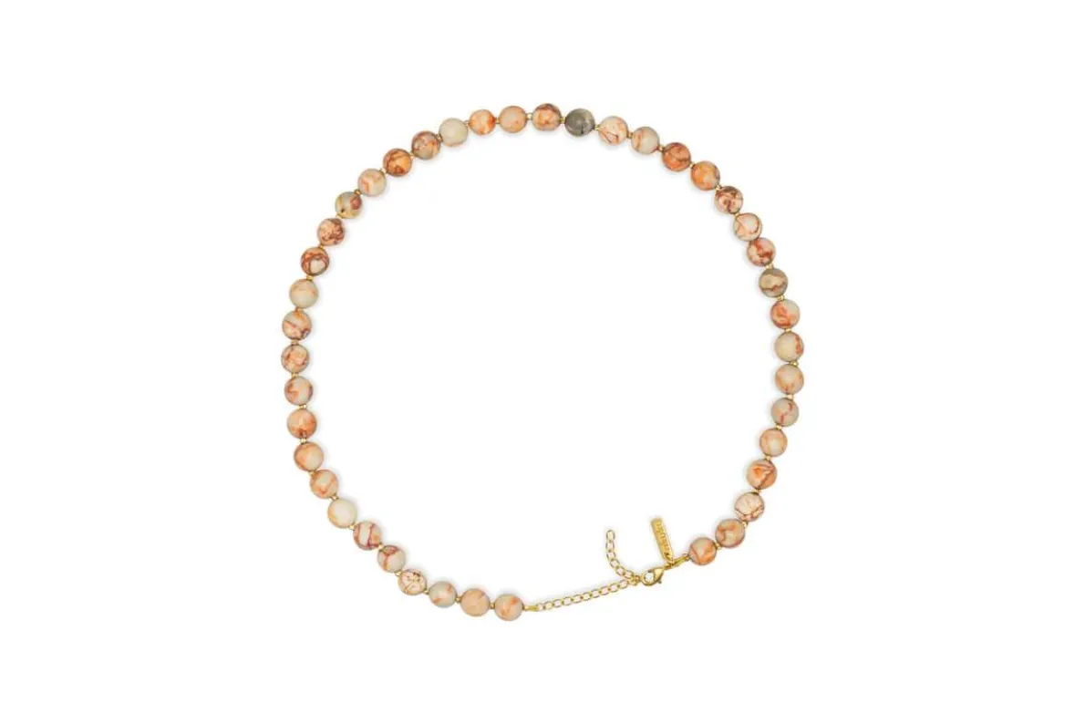 This beaded necklace introduces a new semi-precious stone to the collection, chosen for its soft, seasonal tones and natural elegance. The refined, tactile design layers beautifully with other pieces or makes a subtle statement on its own. Packaged in a linen pouch, it’s a versatile accessory that works effortlessly with both everyday and elevated looks.