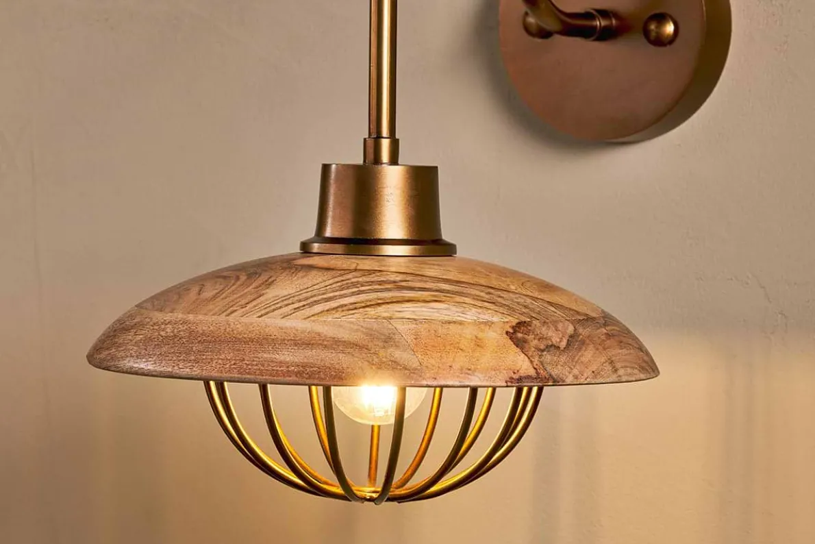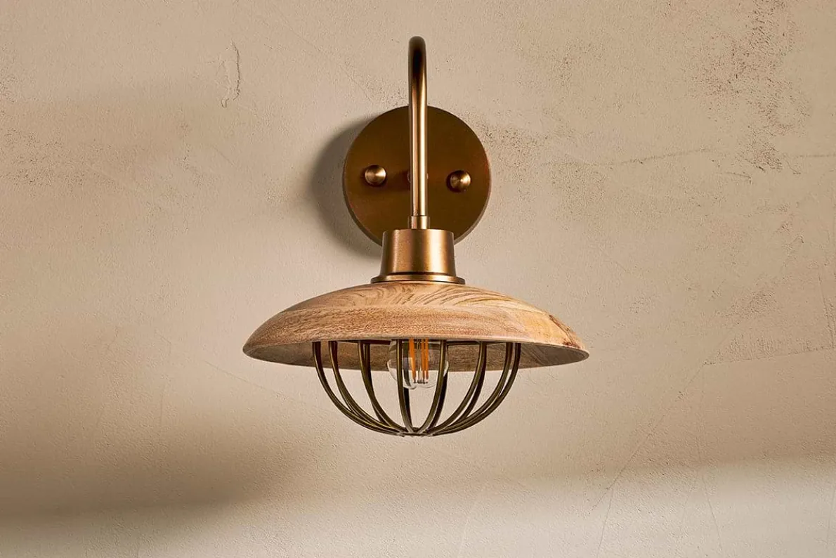 We’ve introduced an elegant wall lamp to our popular Chakai lighting collection: a beautiful addition for extra versatility within the range, allowing for wall lighting that brings gentle pools of light to a room. It showcases two of our favourite materials: antique brass and sustainable mango wood, with the warm tones of the brass cage and swan neck fitting pairing beautifully with the natural grain of the wooden shade. This lamp makes a wonderful reading light, positioned over a sofa, armchair or bed.
