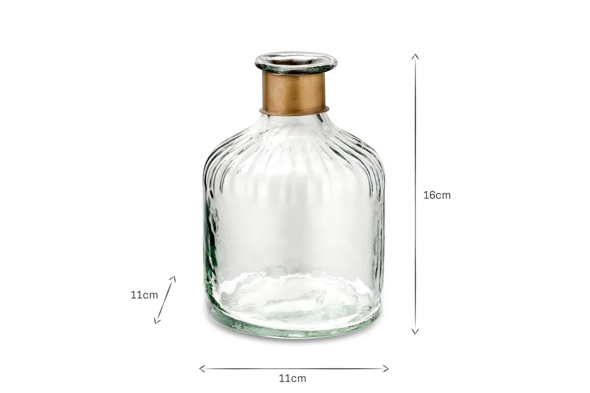 These elegant Chara bottles are decorated with a hammered glass finish and etched detail. The bottle is skilfully created by blowing glass through the brass ring in this stylish design.