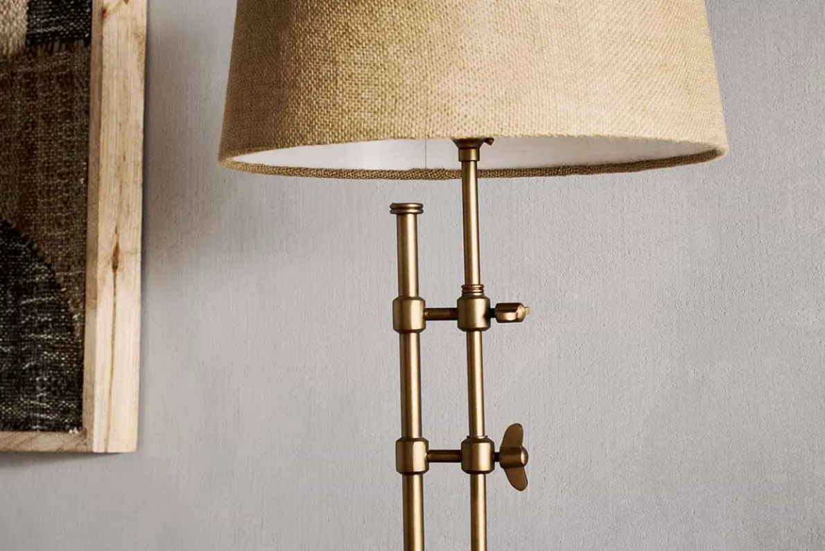 Our industrial-style Chintala table lamp is forged from antique brass for texture and warmth, bringing a delicate yet functional style to your living space. The adjustable arm creates a directional light source, perfect for a reading nook in a sitting room or snug and can easily be adjusted to be stored in a vertical position when not in use. Brass is a beautifully versatile material, with the aged patina of the finish helping to create a timeless look in any room.