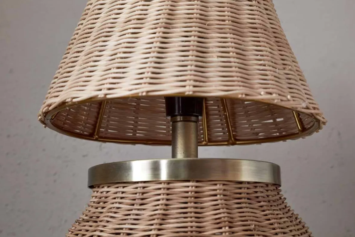 The small Cija lamp is perfectly sized for a bedside table, offering a warm, ambient glow ideal for winding down. It features a woven rattan shade that softly diffuses light through its natural fibres, creating a gentle and calming atmosphere. The wicker work is skilfully woven, and the natural tones are warm and soothing, bringing texture, craftsmanship, and a touch of nature into your space.