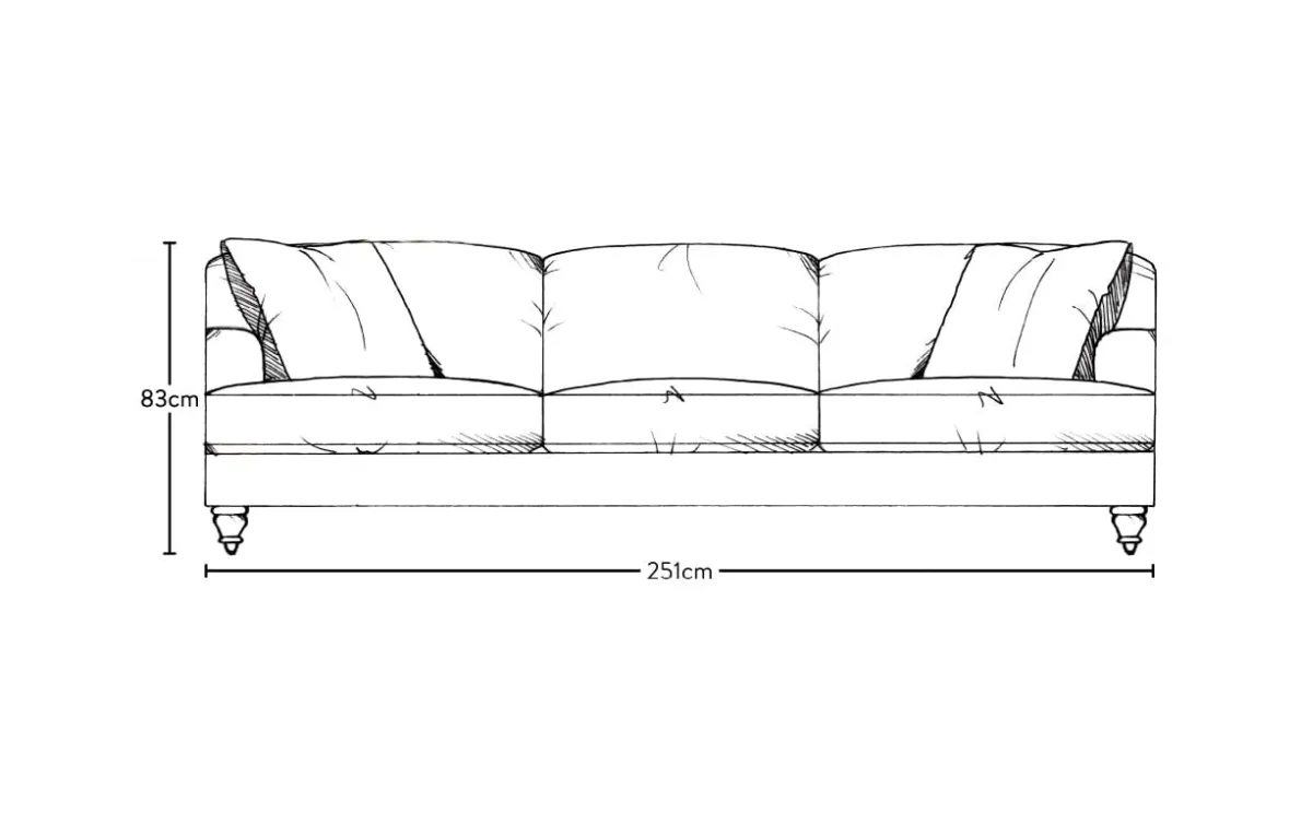 Our Deni super grand sofa is generously proportioned with deep, sumptuous seat cushions for luxurious comfort. Handcrafted from a solid hardwood frame with high-grade steel serpentine springs and foam and fibre wrap filling, this timeless collection celebrates the best of British quality and design. Fine details include in-built back cushions, hand-turned hardwood feet and a set of two scatter cushions for added comfort.