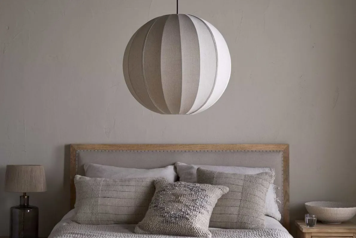 Our Dharini Linen lampshade is the epitome of softness, making it the perfect addition to your bedroom or cosy space. Designed for easy installation, it can be fitted to an existing pendant or used with our Otti pendant fitting, no electrician required. The textured linen beautifully diffuses light, creating a warm and inviting glow. This understated yet stunning shade makes an ideal bedroom light.