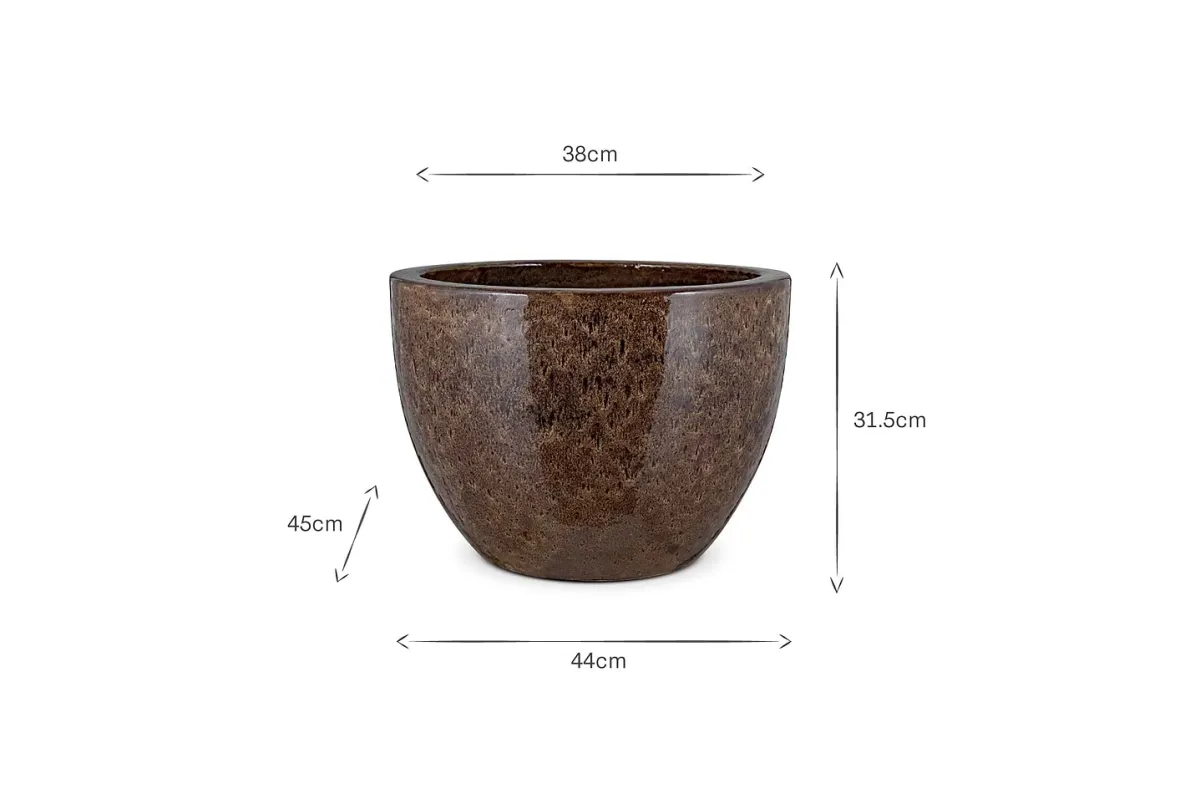 Our Dunai Terracotta Planter takes inspiration from the rich, earthy tones that are central to nkuku’s ethos, bringing a sense of natural warmth and timeless style to your home or garden. Its versatile design makes it ideal for both indoor and outdoor use, featuring a convenient stopper for indoor settings. Each planter is finished with a beautiful reactive glaze, a process which takes place in a kiln and results in variations of colour and texture that make each planter characterful and unique. Available in three sizes.