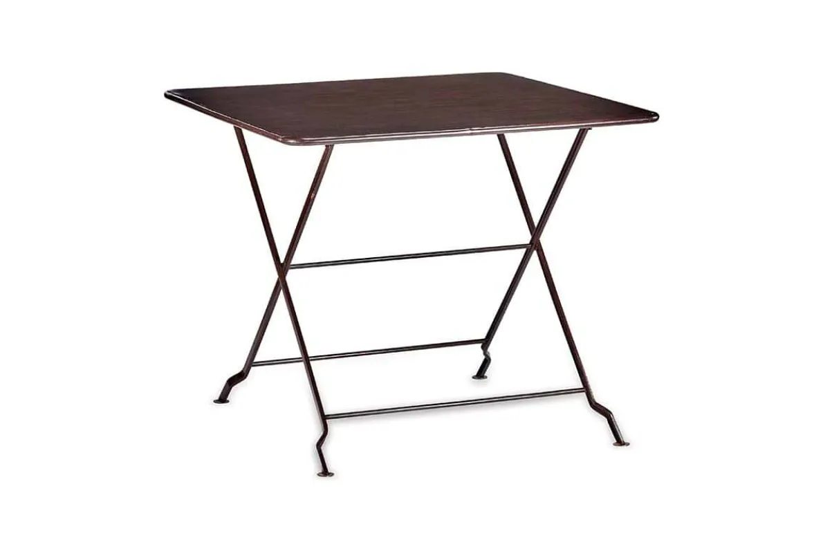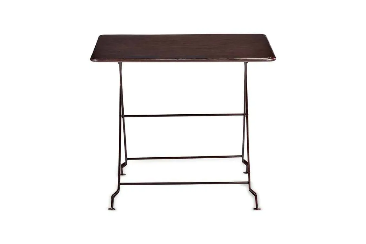 Industrial iron forms the basis of our striking Ekete bistro table. Designed to seat four adults, this practical piece has a characterful distressed tabletop. The table folds neatly away for tidy storage.