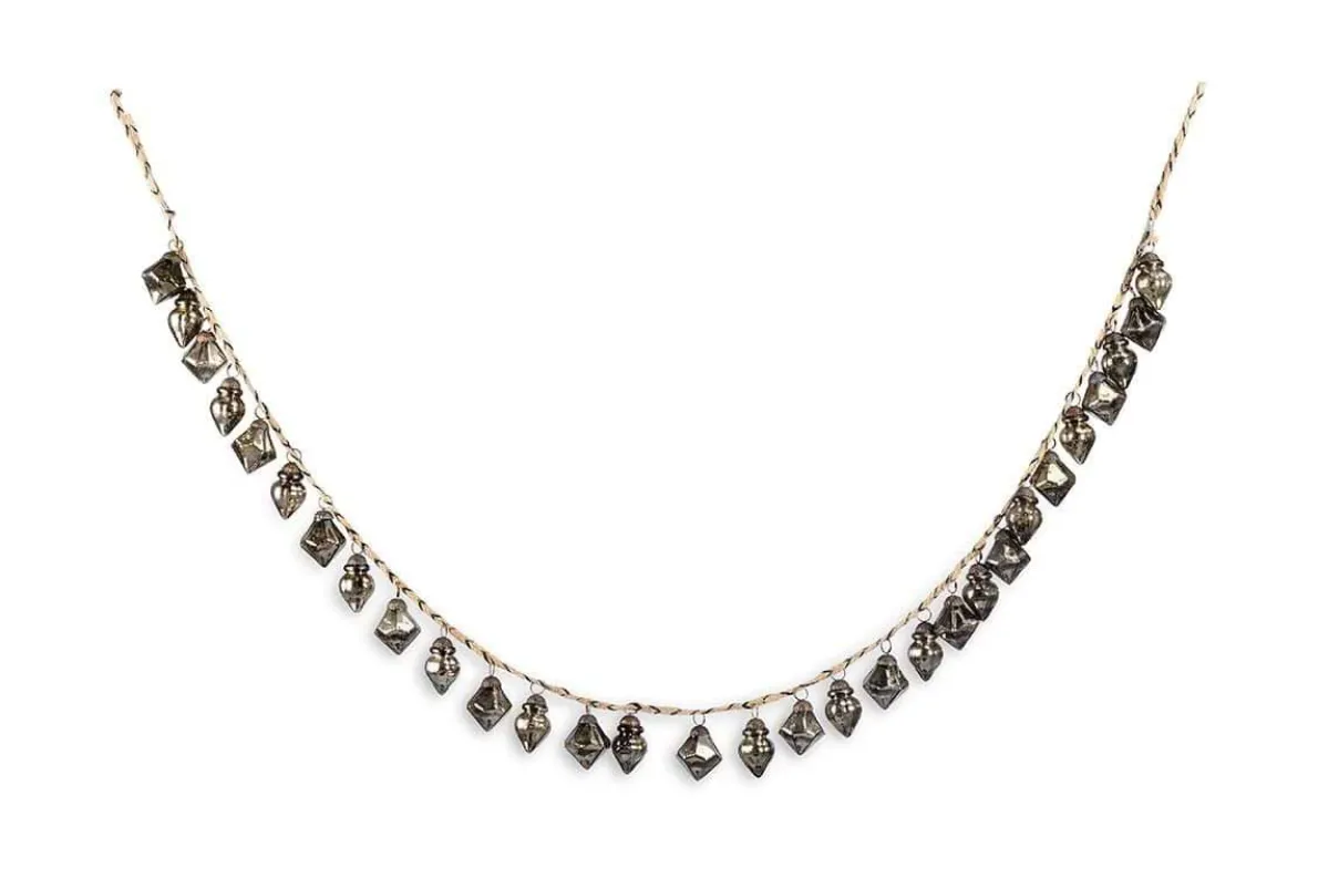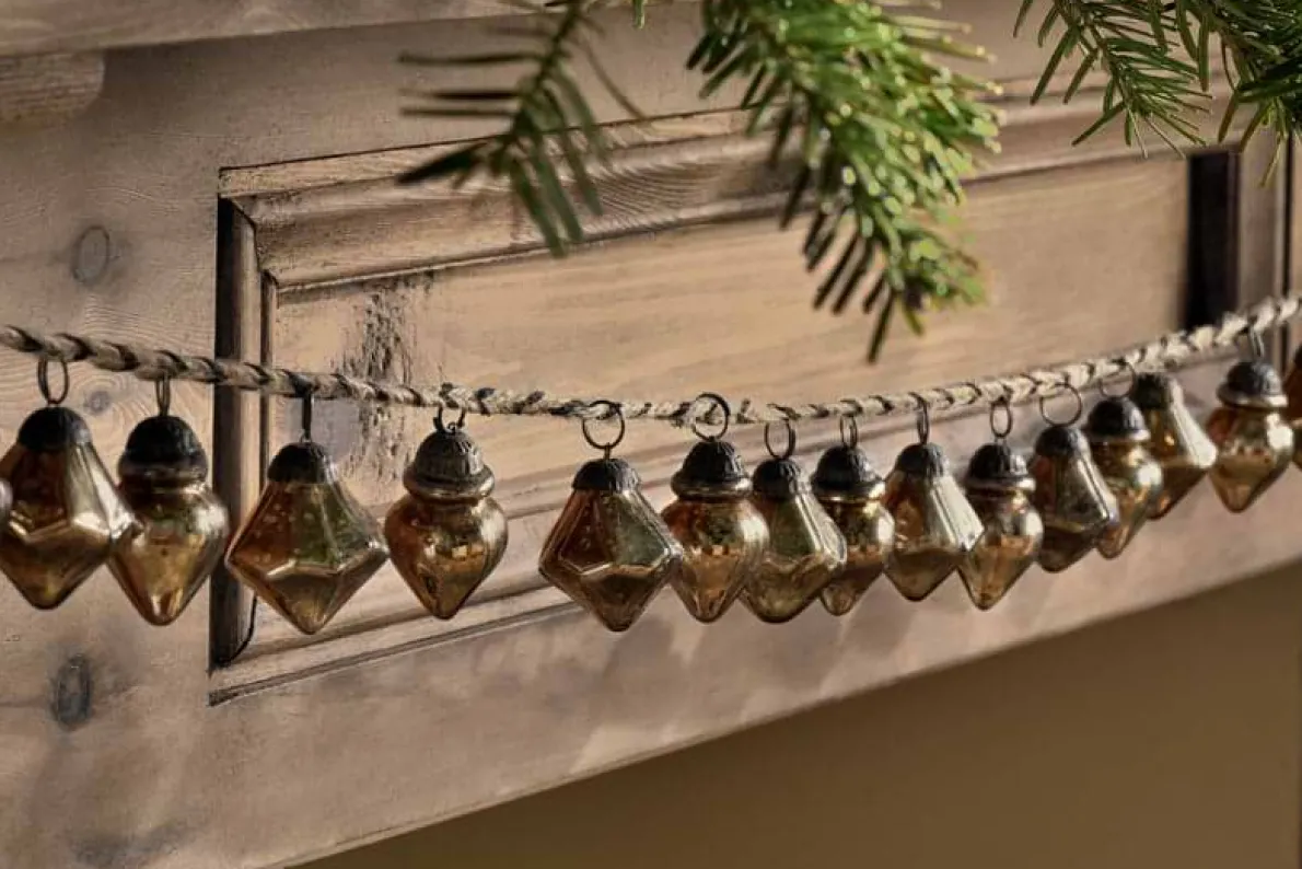 Antique gold is the perfect hue for decorating your home during the festive season. Our Ekiti bauble garland combines this refined colour tone with elegantly shaped recycled glass baubles strung along a natural jute garland. The garland has two practical hooks at each end looking stunning strung across a fireplace or placed on a tree.