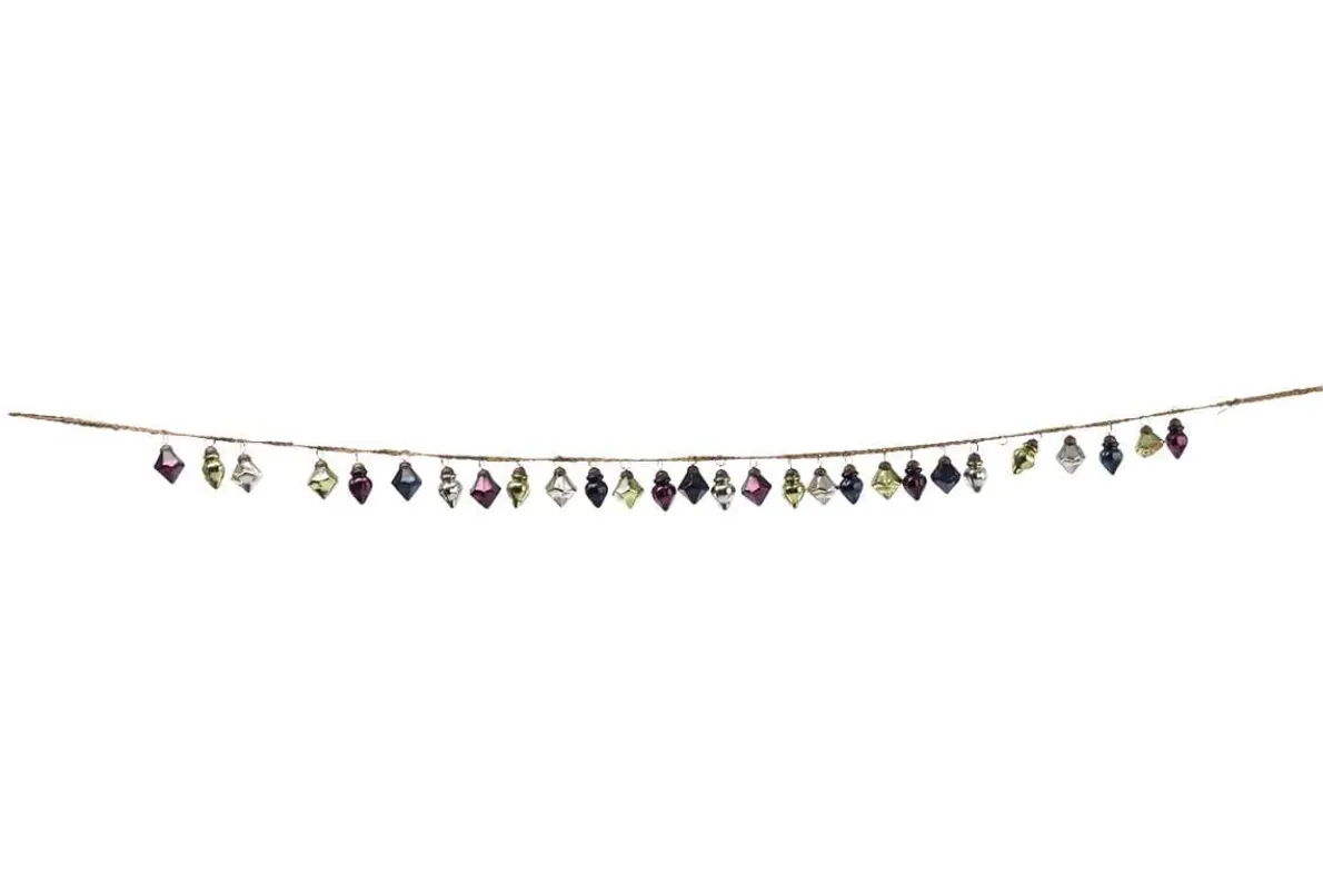 These beautiful garlands are a Christmas essential; each pretty bauble is handmade from recycled glass and joined together with natural jute. Each garland is over a metre in length.