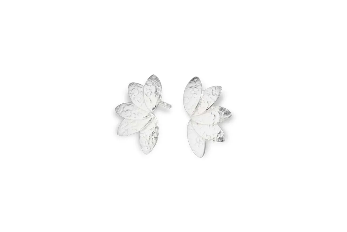 Our large silver plated Elina Double Leaf Earrings are delicately shaped and beautifully textured. A nod to the natural world, they are inspired by the wonder of botanical forms, exuding effortless grace and simplicity. Each piece is hand-hammered for a tactile finish. This versatile piece can be placed on the side of the ear or facing down, depending on how you like to style your look.