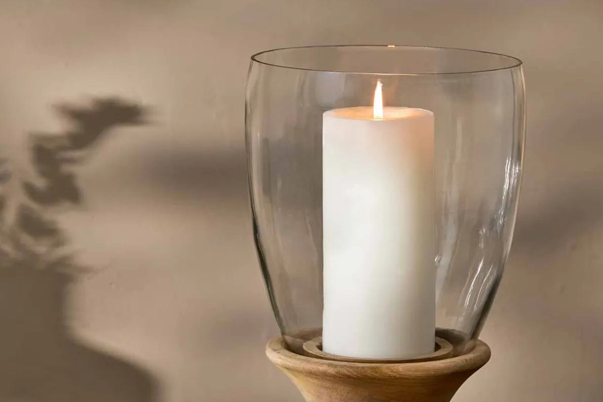 The Eluru lantern brings elegance and style to a table or sideboard. The generous glass lantern top sits perfectly in the hand turned mango wood base. The simple design blends perfectly with the warm natural tones of the mango wood. We use recycled glass to make these collections. Firstly, the waste glass is collected and washed to remove any impurities; it is then crushed and melted down before being hand blown or placed in moulds to create beautiful new products.