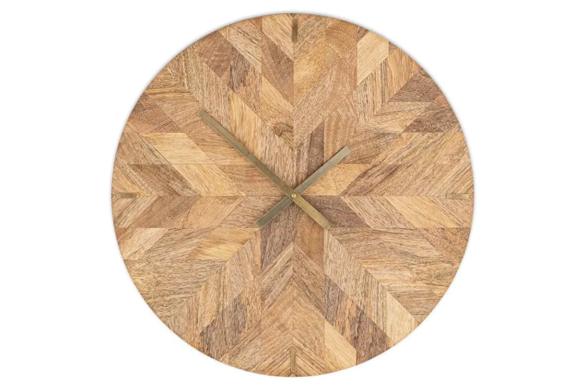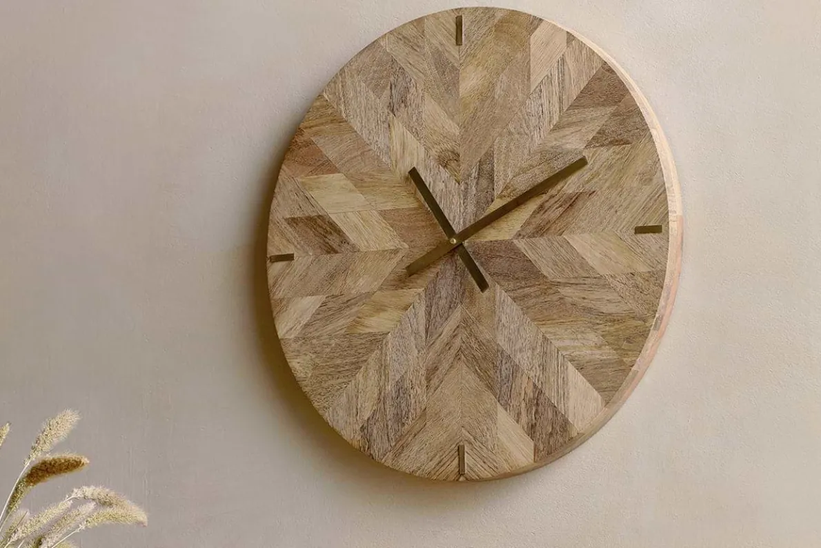 A testament to craftsmanship, our Enugu mango wood clock is skillfully made from small pieces of mango wood. The natural colour variations form a characterful texture-rich patchwork which is eye-catching and unique. The clock is finished with simplistic brass hands and lines, marking the hours at 3, 6, 9, and 12. This stylish timepiece effortlessly blends form and function as the mango wood pieces are off cuts from furniture production, minimising wastage. Please note, this clock is designed to be portrait hung on a wall.