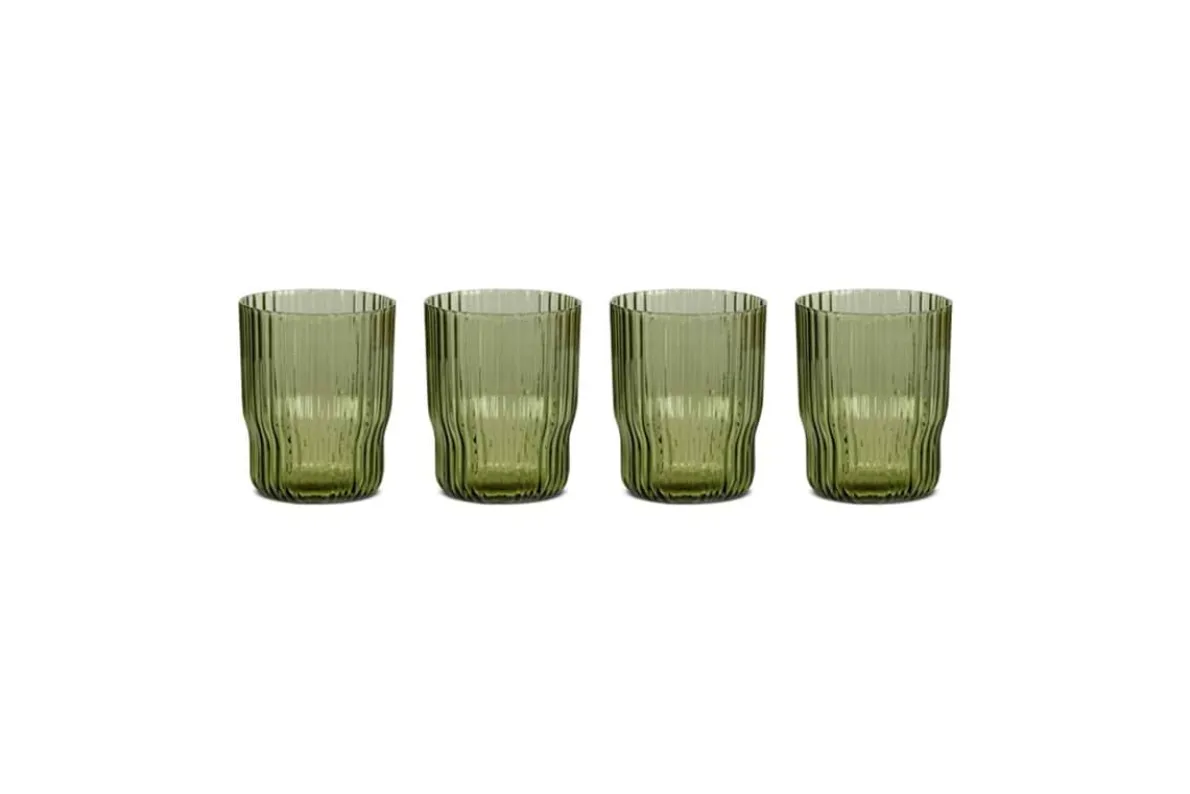 The olive green Fali tumbler has a fresh spring like quality. The colour runs through the glass in a solid colour. The ribbed design somehow enhances the olive tone, creating an interesting texture that also feels nice to hold. The Fali tumbler is perfect for everyday use and it makes an easy addition to a tablescape, adding a sophisticated colour tone. The olive green hue makes a welcome connection with nature, adding a peaceful and harmonious tone as well as a refreshing aesthetic.