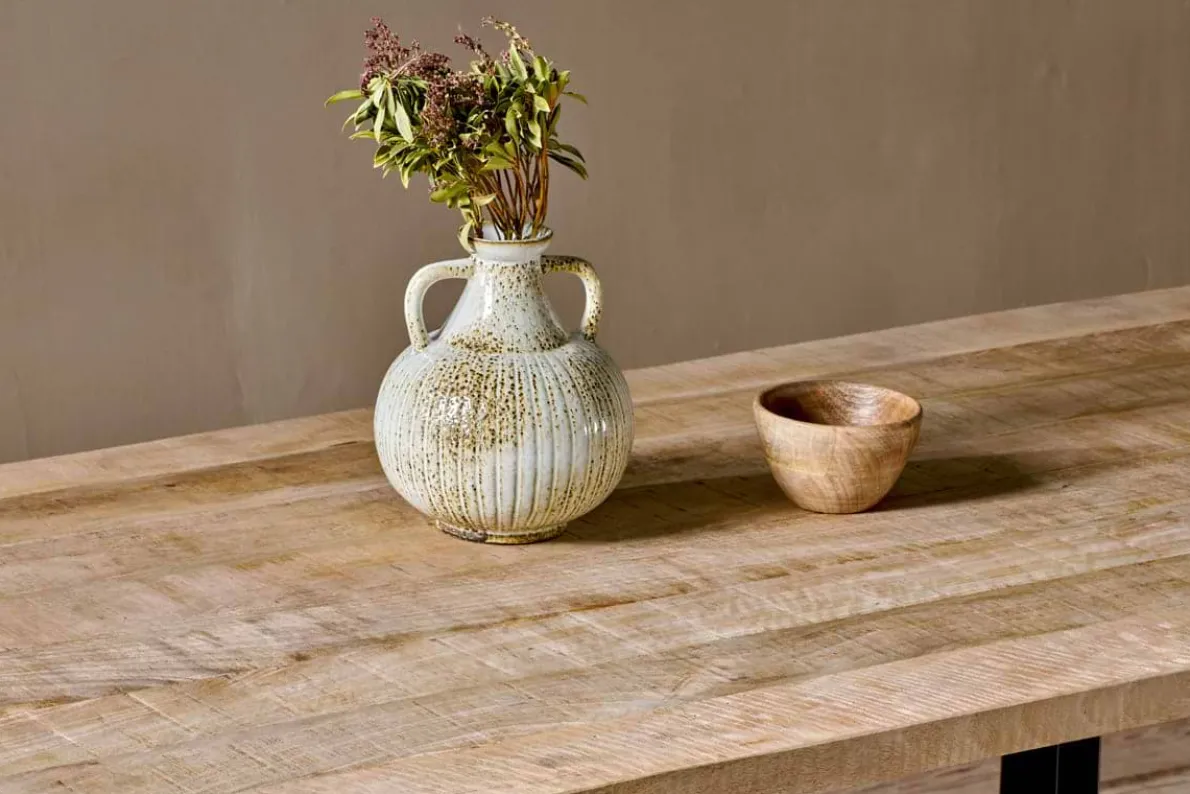 Good, honest design and beautiful natural materials combine in our collection of Fia dining tables and benches. Crafted from sustainable mango wood the natural characteristics shine through, supported by a strong, angular iron base.