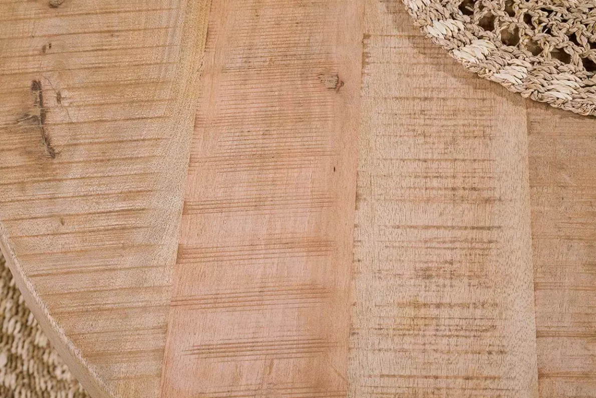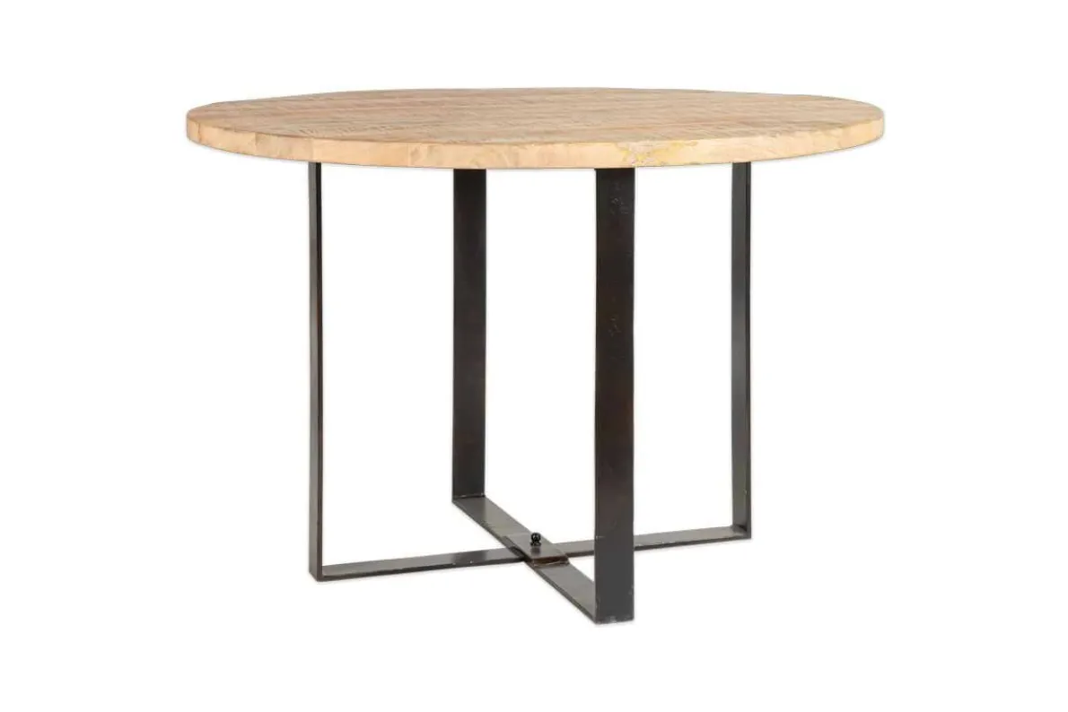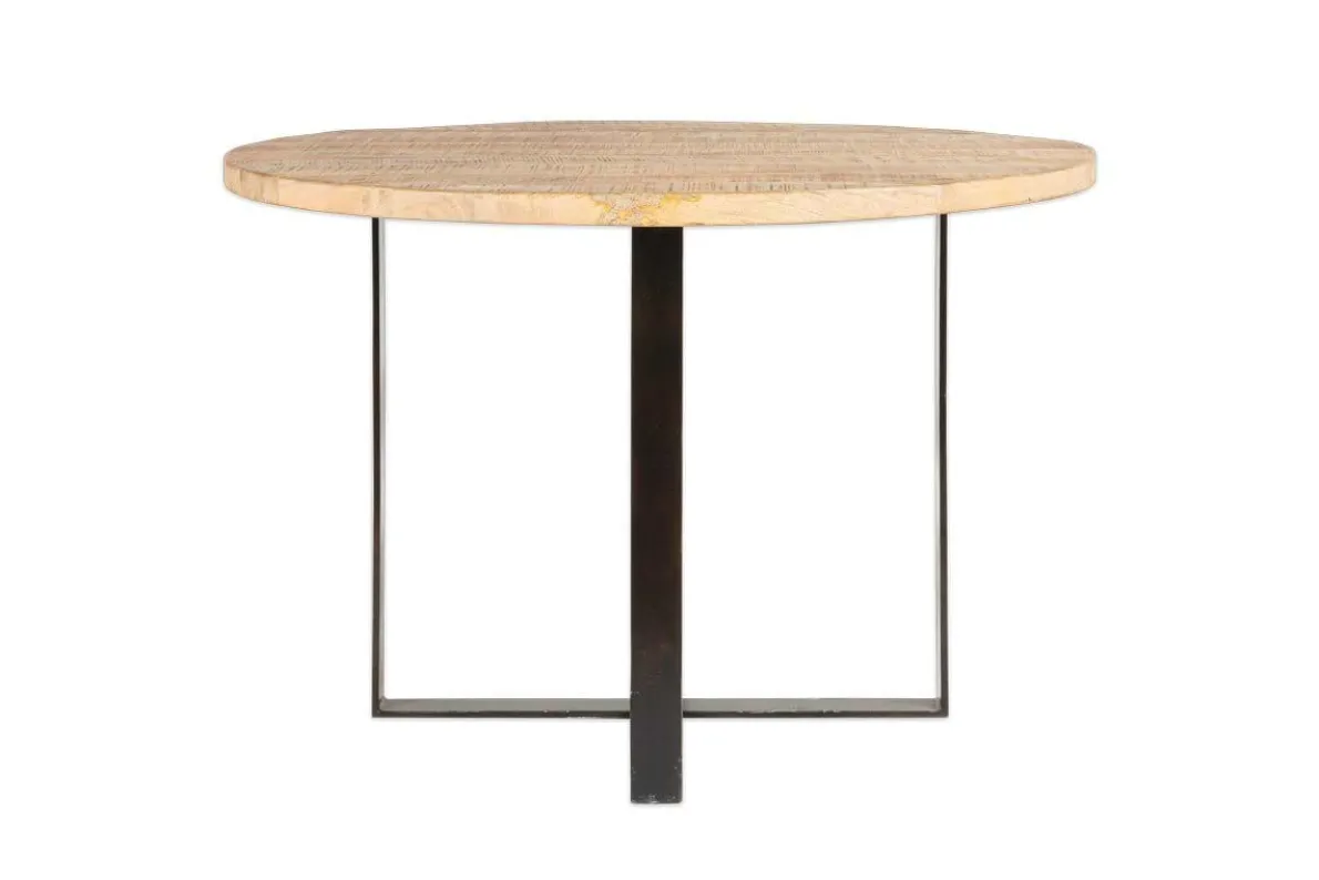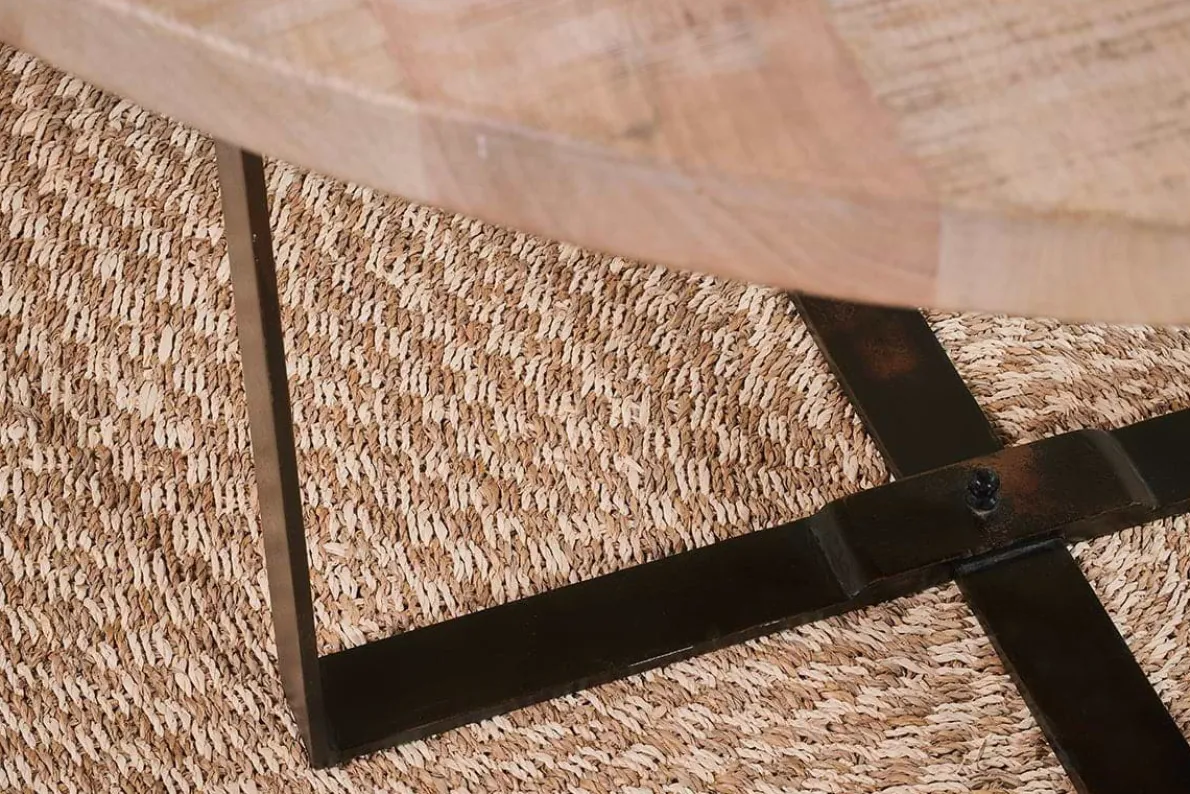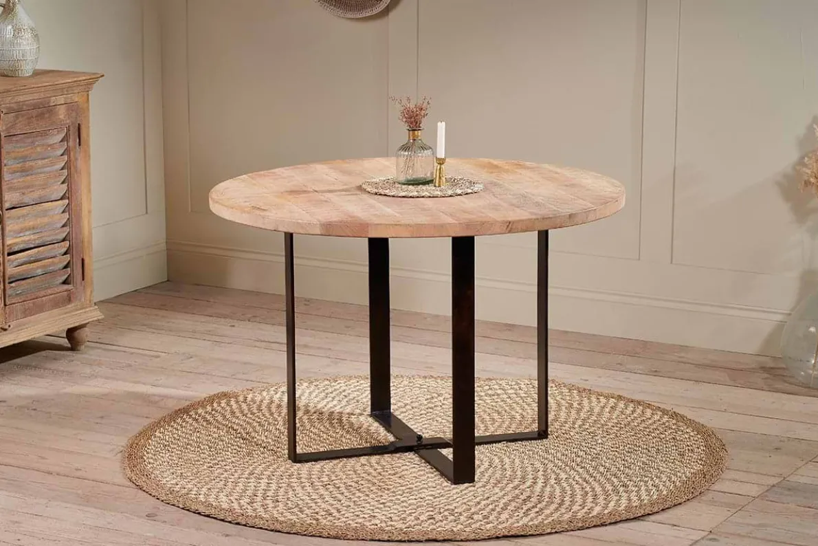 The Fia mango wood round dining table, is the perfect place to gather with family and friends. The industrial iron legs are purposeful, sturdy and well designed with a criss – cross at their base. The table top feels chunky and the natural grain of the wood provides a soft, natural patina. Mango wood has the added eco qualities of only being harvested once the trees have stopped bearing fruit and their short-growing cycle means they provide a supplementary income for local farmers. The Fia will comfortably seat four. The mango wood table top is finished with a sealant and matt lacquer.