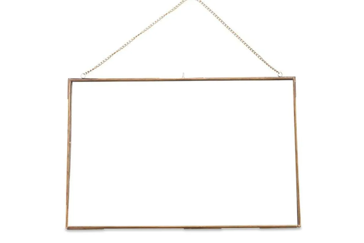 Our Gigantic Brass Kiko Frames are beautifully handmade from brass and finished with a rich antique look. The solid brass frame combines perfectly with the glass interior providing the perfect backdrop for all forms of artwork from photographs and keepsakes to sketches and montages. Each one is hung with a brass chain.