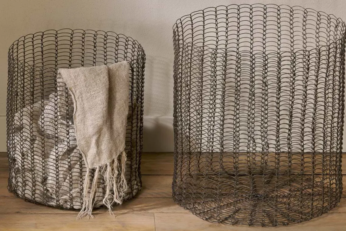 Combining functionality with contemporary design, these elegant baskets are hand-sculpted from iron and finished in a warm aged brass hue. Offering ample storage for blankets, books, and more, they come as a set of two and are designed to stack neatly when not in use. Whether used for organisation or as decorative pieces, these beautiful wire baskets meld style with practicality, making them a versatile addition to your home.