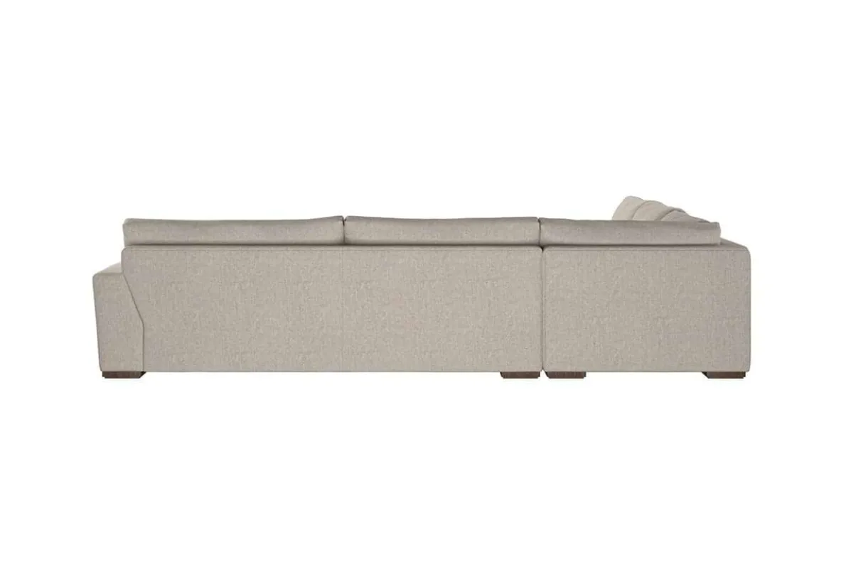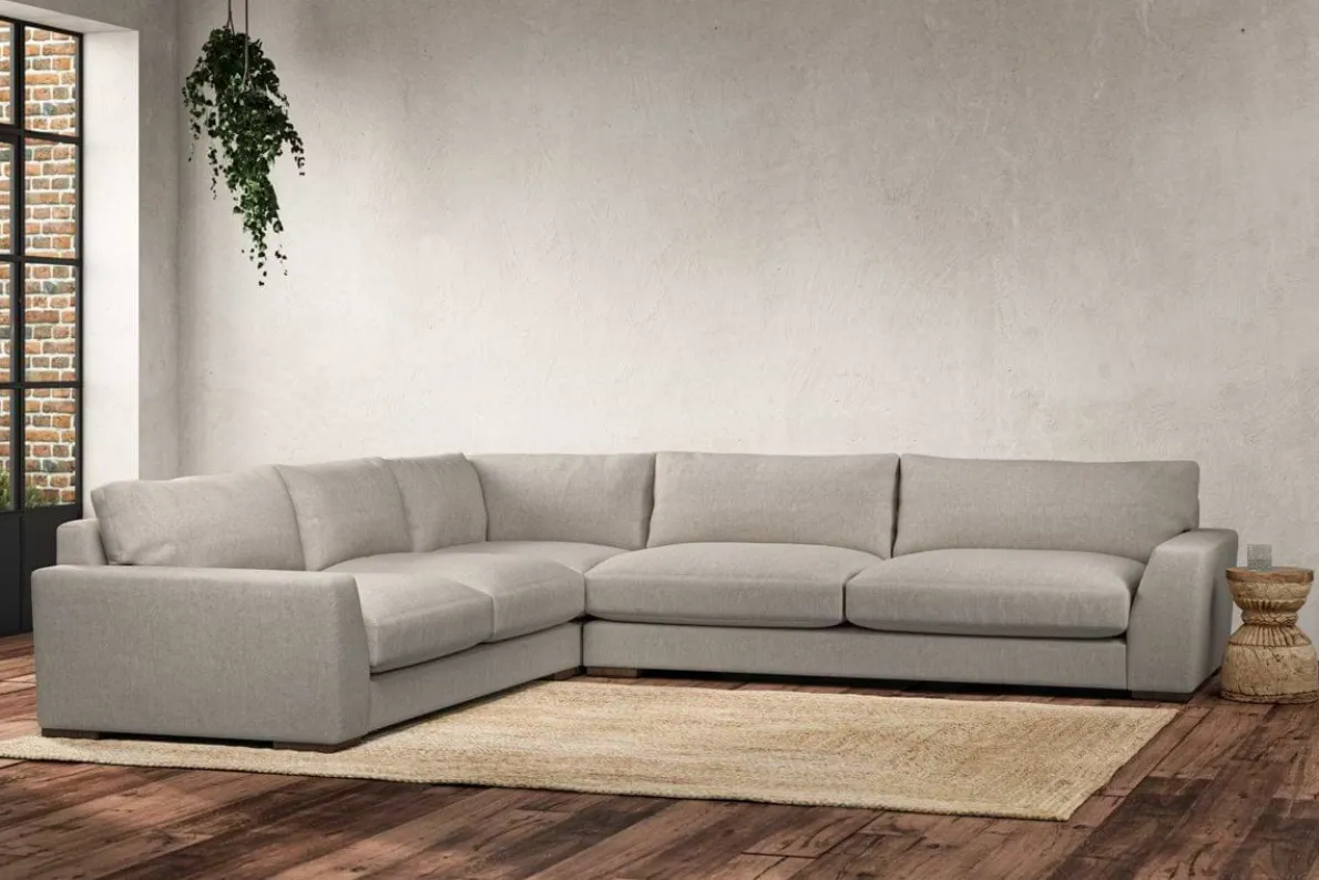 The laid-back sculptural shape of the Guddu grand left hand corner sofa brings effortless style to an interior. The generous arms and deep seat cushions make this collection the perfect choice for families or those that like a bit of extra space to stretch out. Details include separate back cushions, exceptional quality fabrics and solid wood block feet. Each piece is handcrafted by experts using traditional techniques for a quality finish that celebrates the best of British craftmanship.