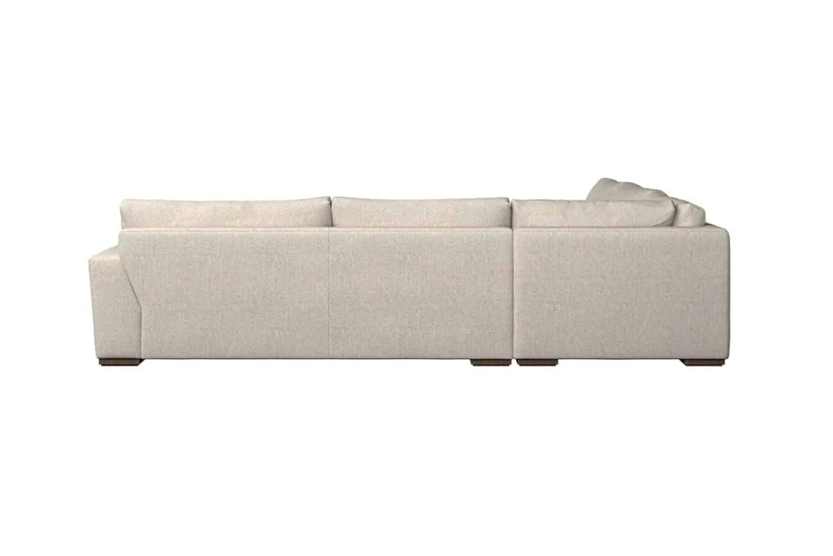 The laid-back sculptural shape of the Guddu grand right hand corner sofa brings effortless style to an interior. The generous arms and deep seat cushions make this collection the perfect choice for families or those that like a bit of extra space to stretch out. Details include separate back cushions, exceptional quality fabrics and solid wood block feet. Each piece is handcrafted by experts using traditional techniques for a quality finish that celebrates the best of British craftmanship.