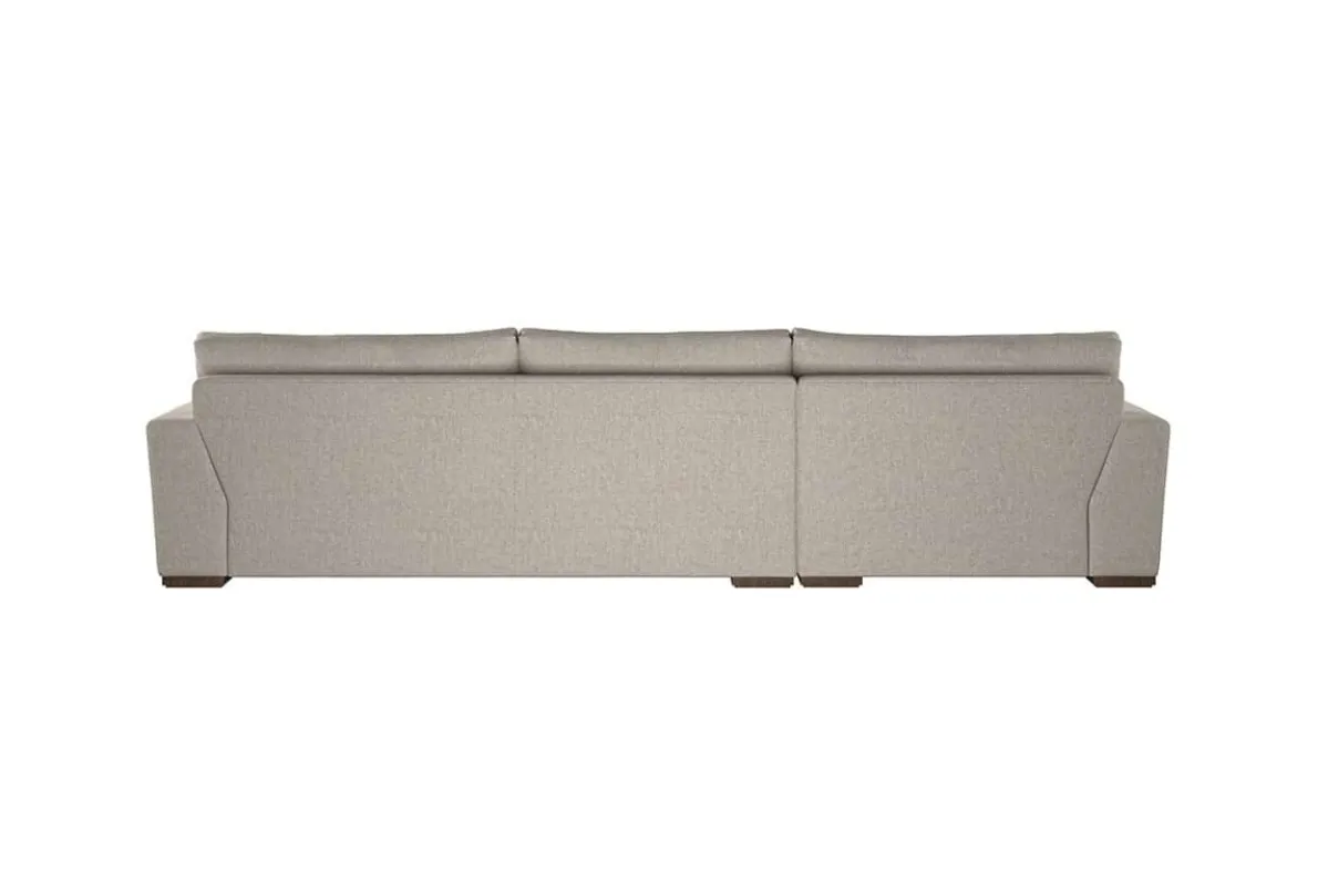 The laid-back sculptural shape of the Guddu large left hand chaise sofa brings effortless style to an interior. The generous arms and deep seat cushions make this collection the perfect choice for families or those that like a bit of extra space to stretch out. Details include separate back cushions, exceptional quality fabrics and solid wood block feet. Each piece is handcrafted by experts using traditional techniques for a quality finish that celebrates the best of British craftmanship.
