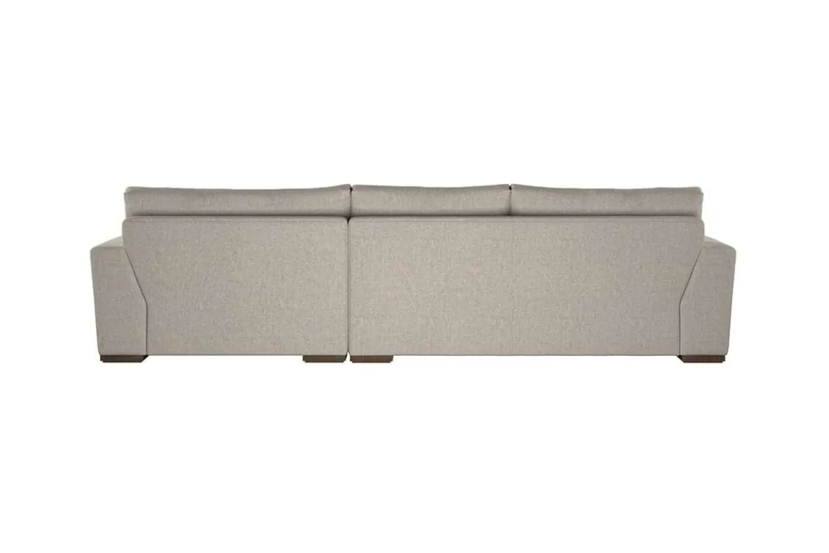 The laid-back sculptural shape of the Guddu medium right hand chaise sofa brings effortless style to an interior. The generous arms and deep seat cushions make this collection the perfect choice for families or those that like a bit of extra space to stretch out. Details include separate back cushions, exceptional quality fabrics and solid wood block feet. Each piece is handcrafted by experts using traditional techniques for a quality finish that celebrates the best of British craftmanship.