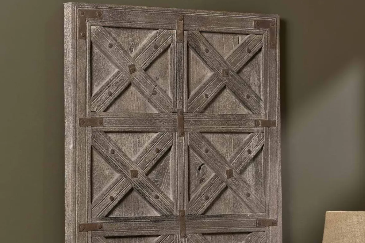 Originally our Gurdisha wall art formed door panels from homes in the central desert region of India. Now the highly decorative reclaimed wood and iron pieces would make a bold and striking feature in a living space. The faded tones and uneven paint and metal finishes mean they complement a variety of interior schemes and create an eye catching scene without detracting from other pieces.