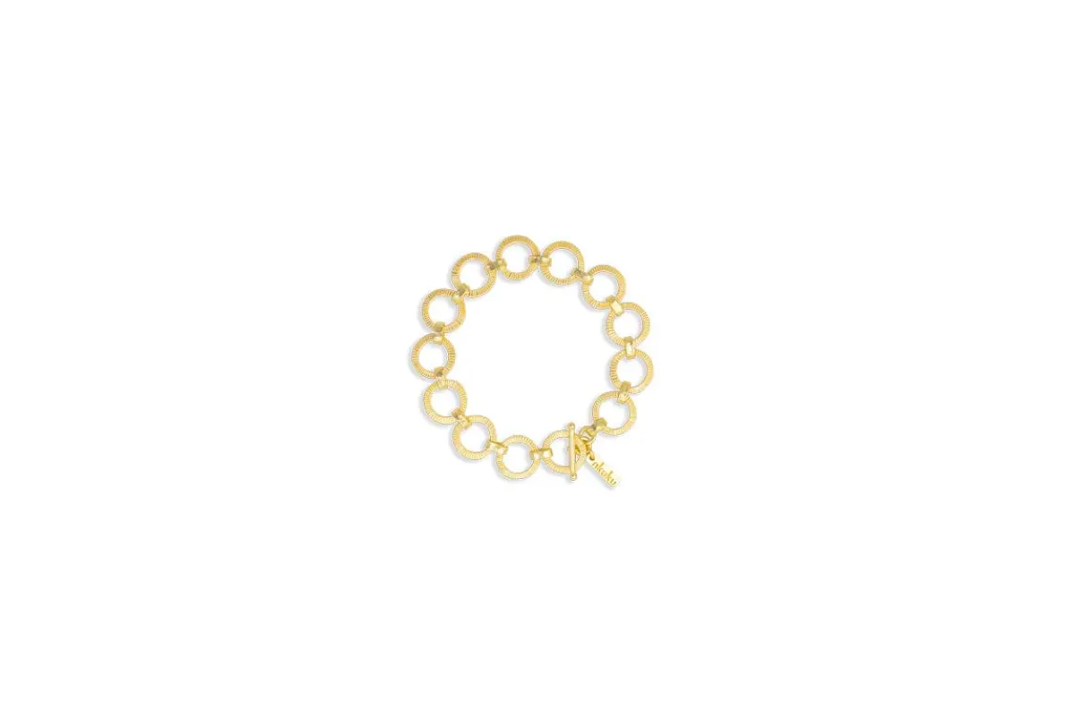 This simple yet striking statement piece is made from hand-etched, interwoven warm gold plated links. The chunky chain is made of brass alloy with gold plating and has a cool contemporary appearance with bar closure. Made to partner the Hara Onyx necklace. Hypoallergenic and nickel free.