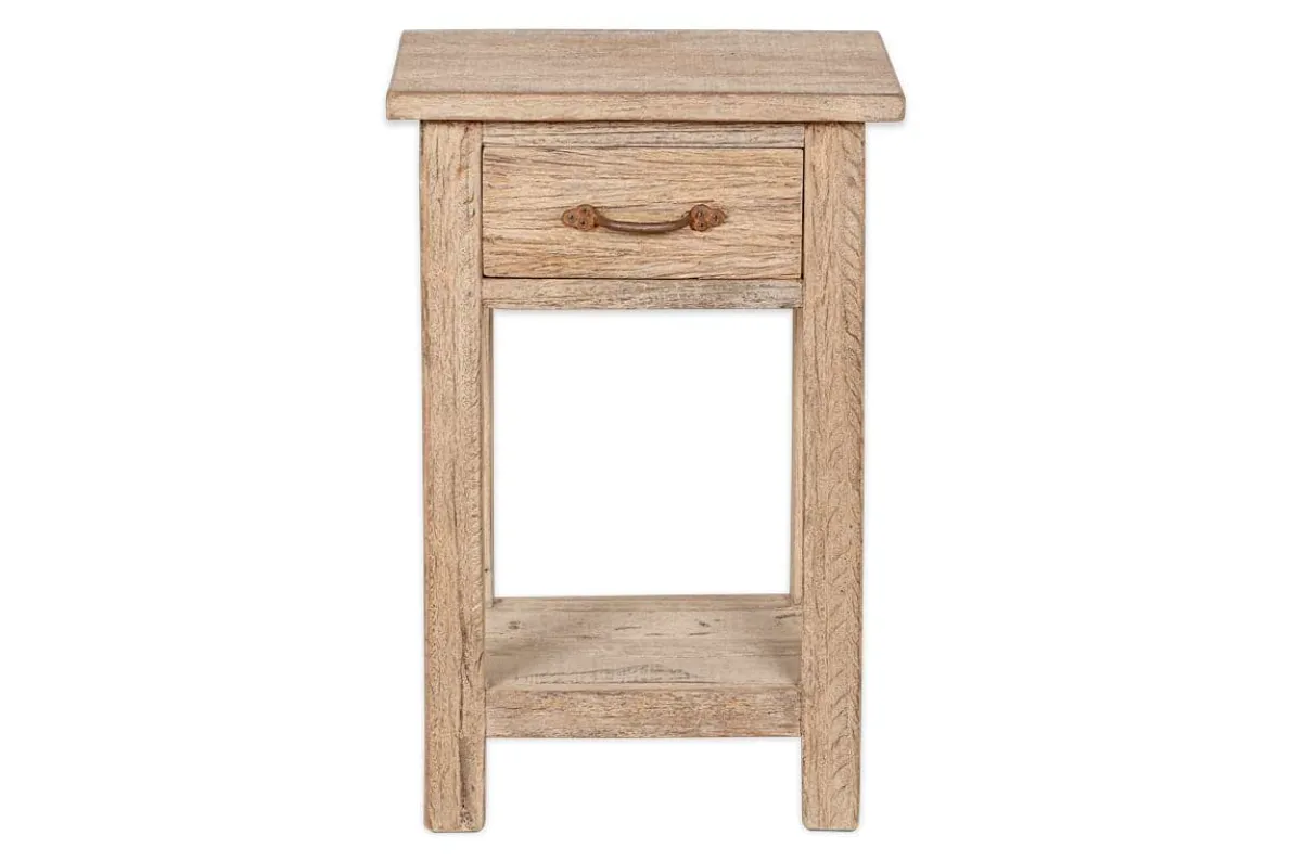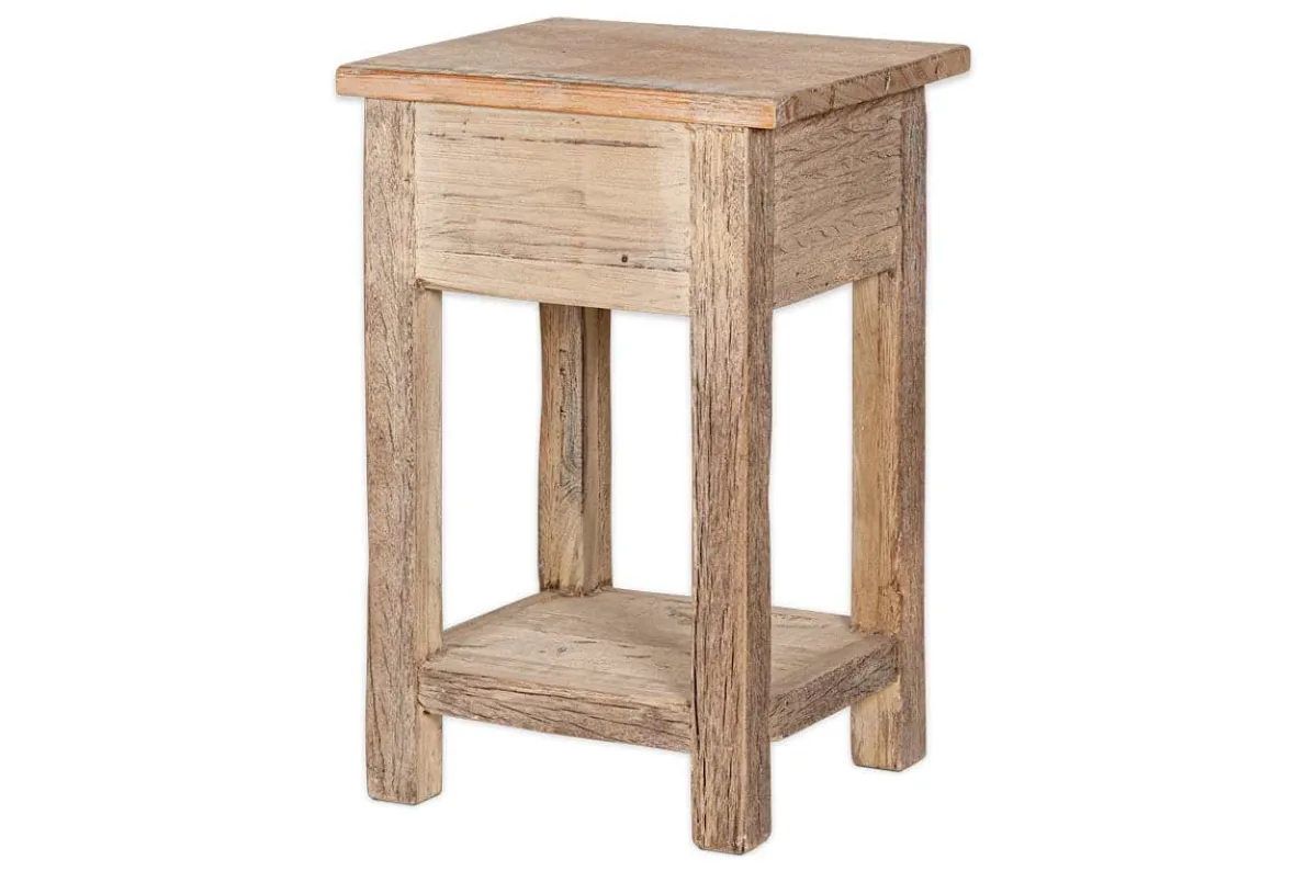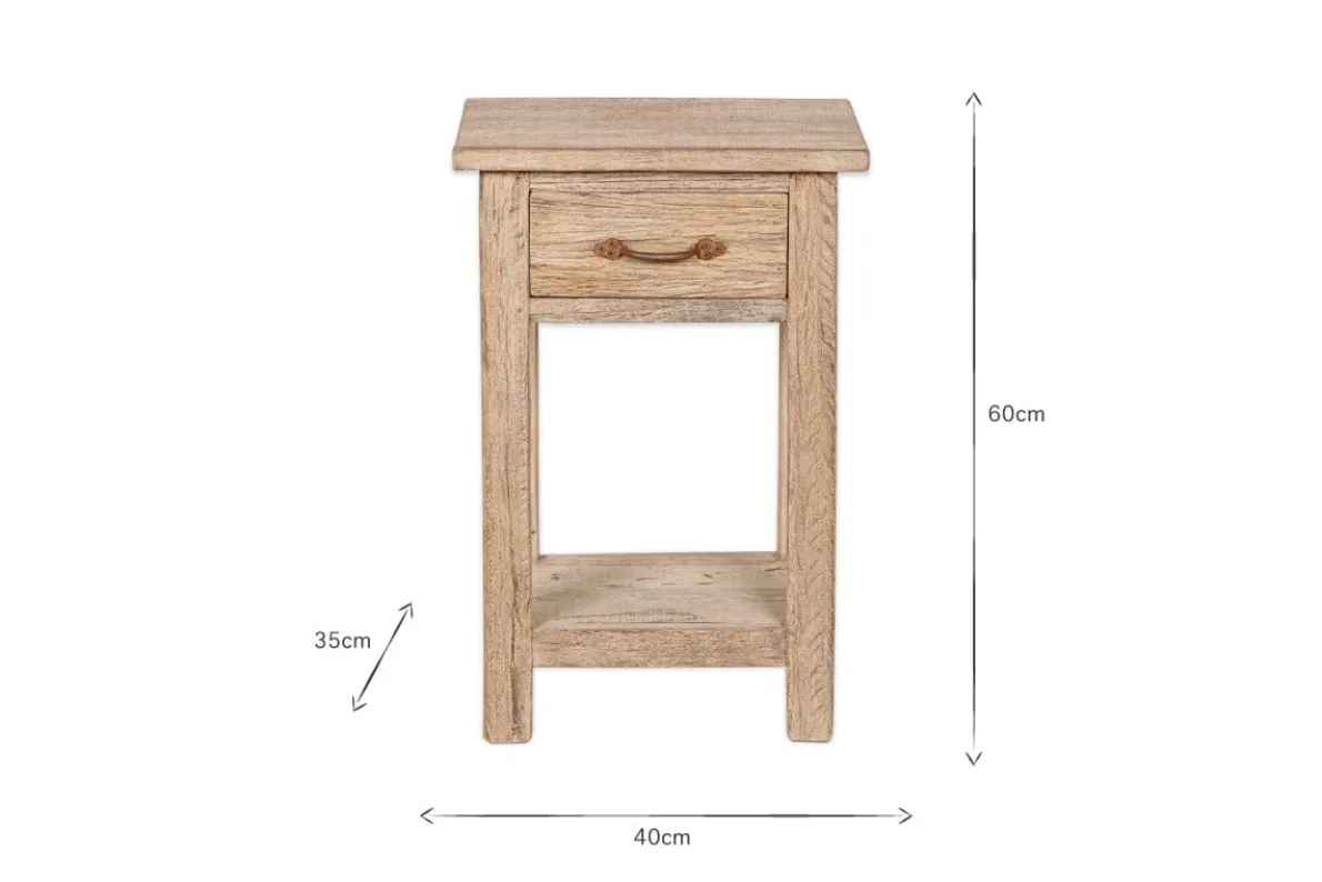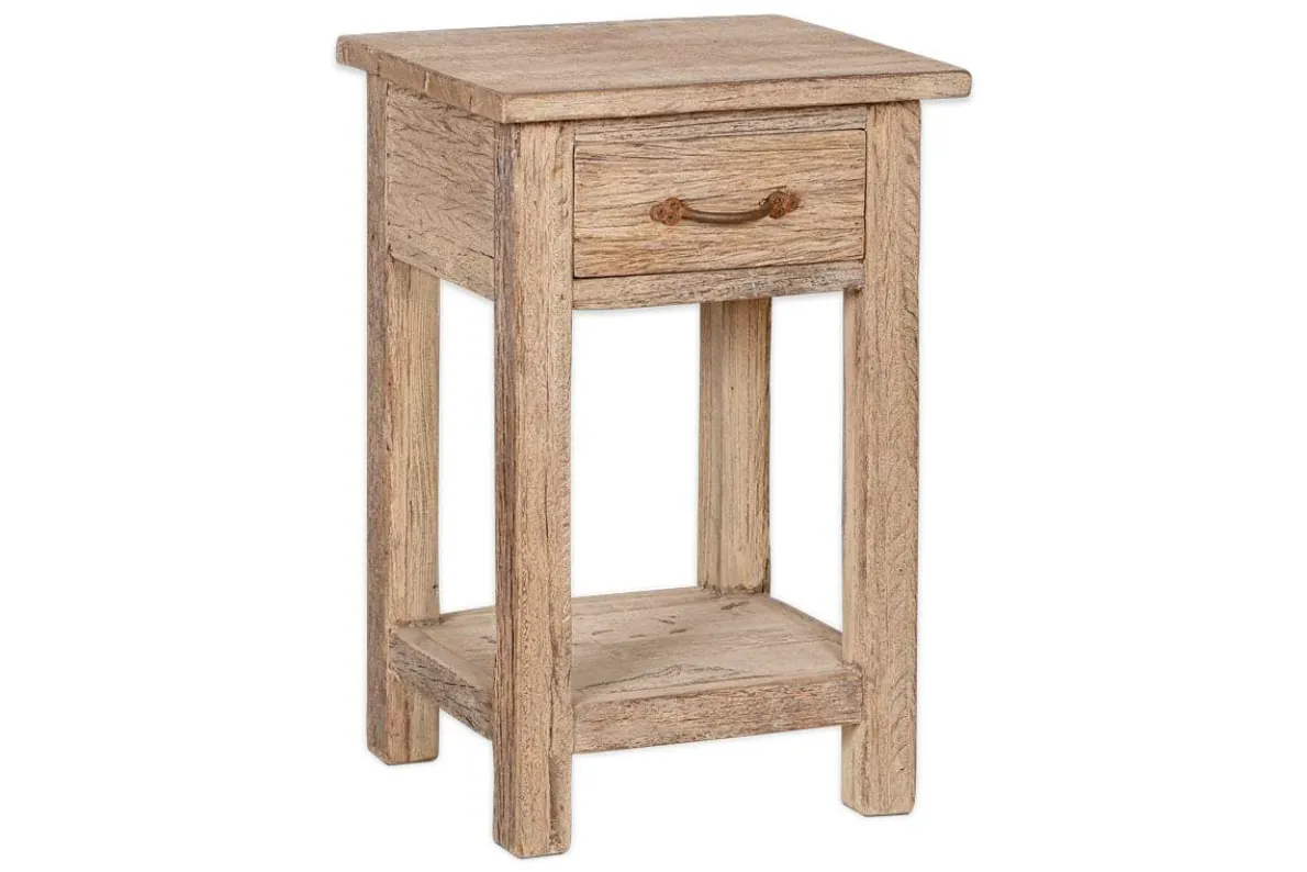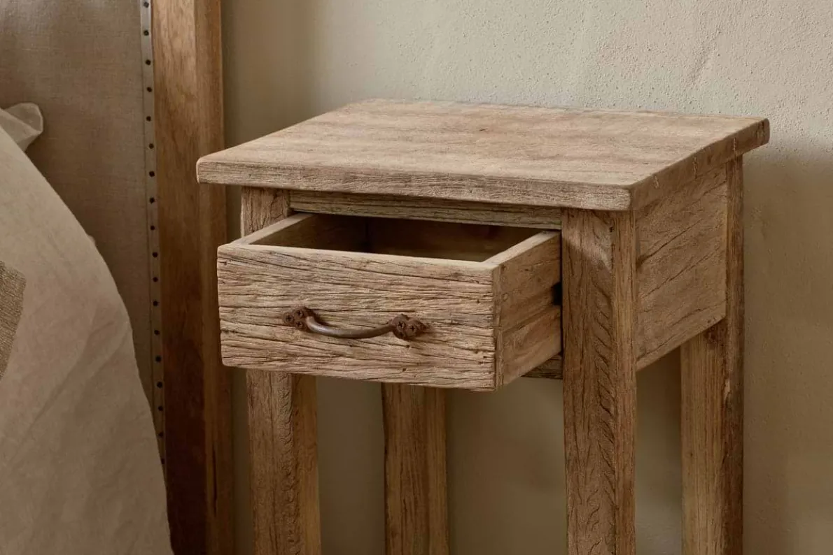 Our Ibo collection has an ingenious and creative origin story in the wooden panels from Indian trucks. The weathered tone and imperfections of the materials used in the Ibo Bedside Table come through beautifully, with every piece showing unique variations in the tone of the wood, authentic rough textures, and knots and splits in the grain which only add to the rustic charm. Strong and sturdy, the design is stylish yet simple and makes a perfect pared-back addition to a bedroom or as a side table in a living space. The pale, natural finish creates a laidback look that fits well into a relaxed decor and brings tactility and interest into a room.