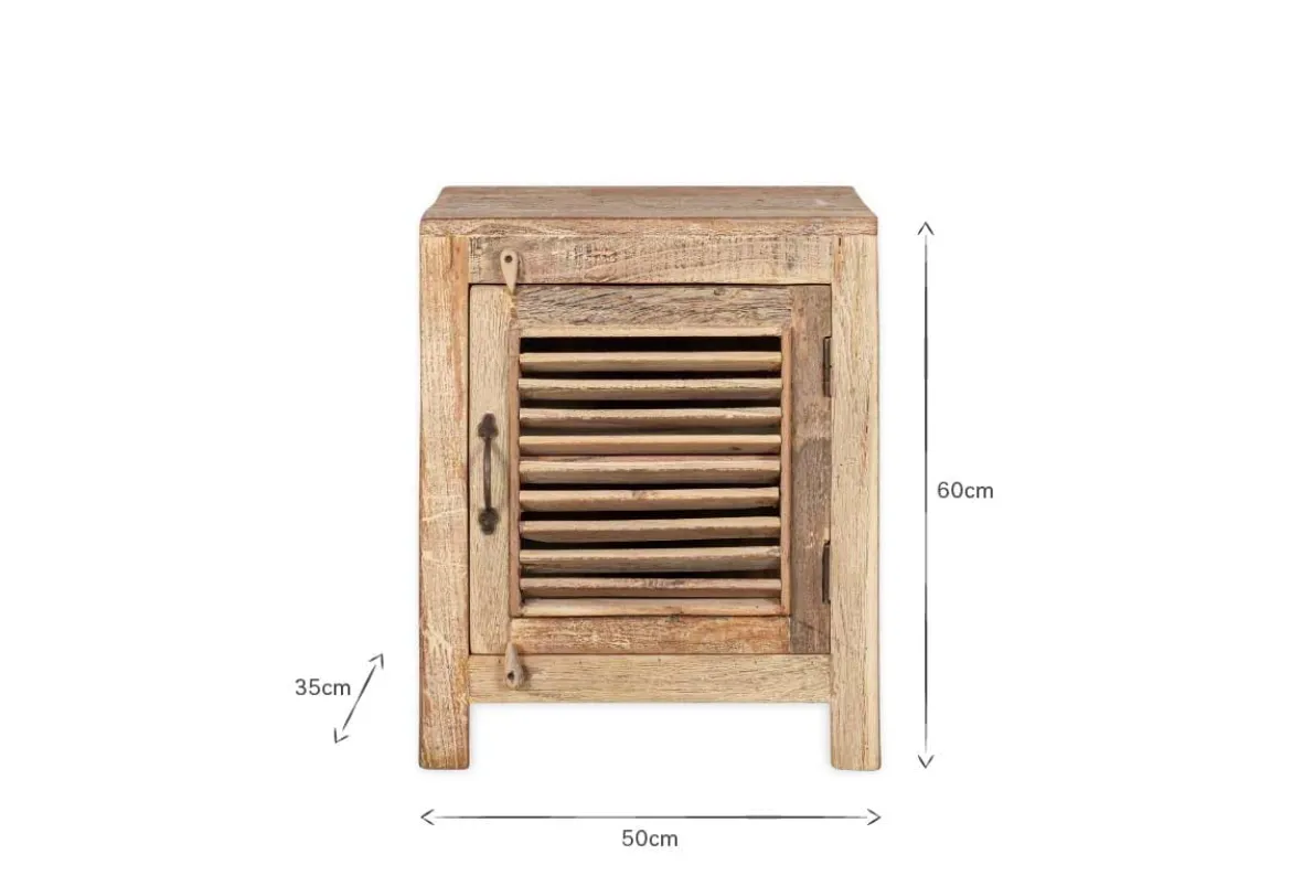 The Ibo collection celebrates the versatility and creativity of Indian artisan craftsmanship, as perfectly demonstrated by the small Ibo cabinet. Made from rustic reclaimed wood, this piece spent a former life travelling on the exterior of an Indian truck, and has been re-purposed to create a stylish storage cabinet. The weathered tone and imperfections of the materials comes through beautifully, with every piece showing unique variations in the tone of the wood, authentic rough textures, and knots and splits in the grain only add to the rustic charm. Strong and sturdy, the design is stylish yet simple, and the pale, natural finish creates a laidback look that fits well into a relaxed decor.