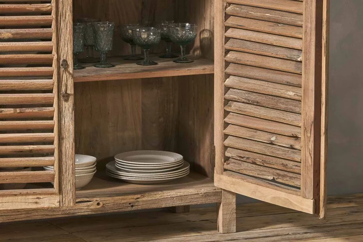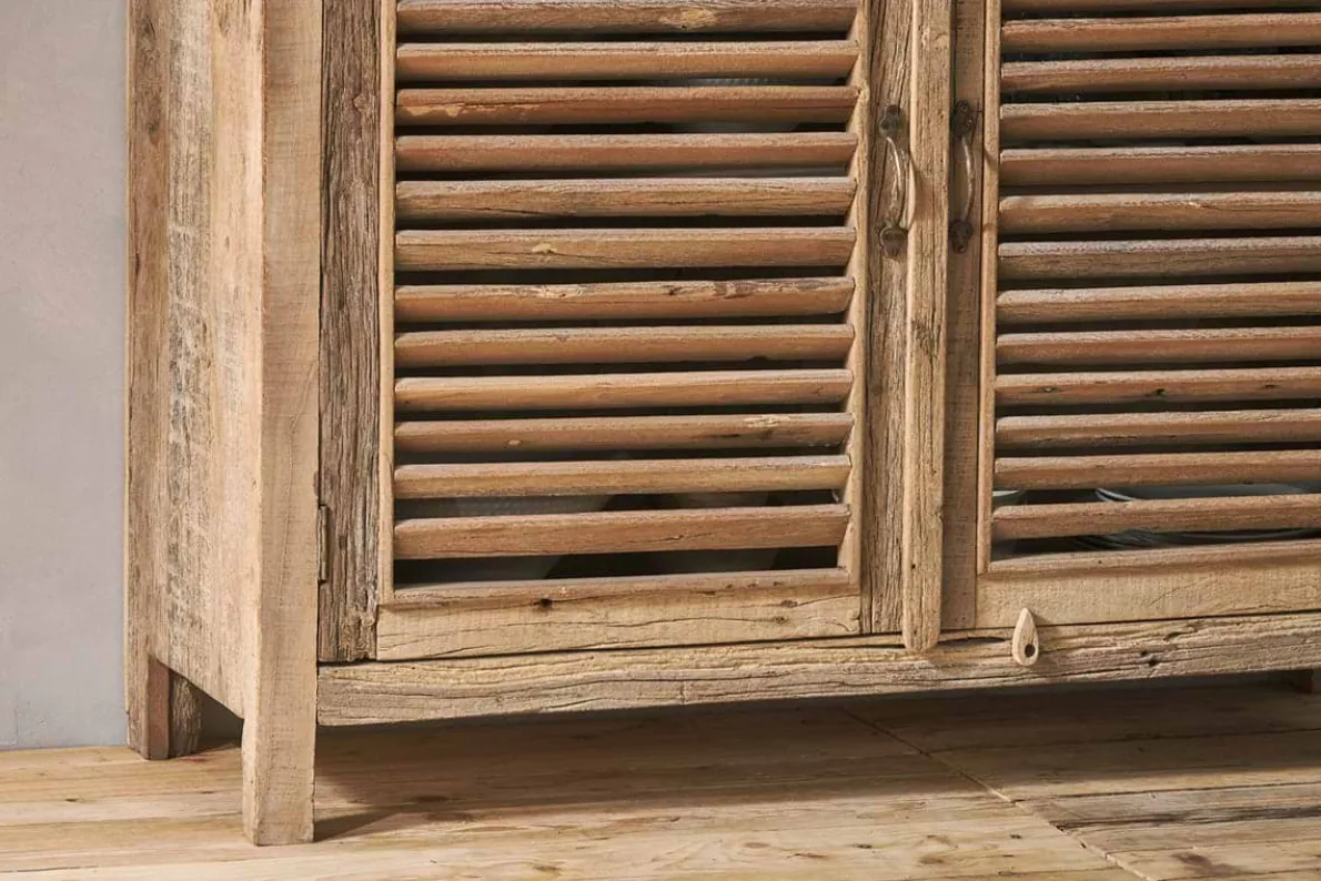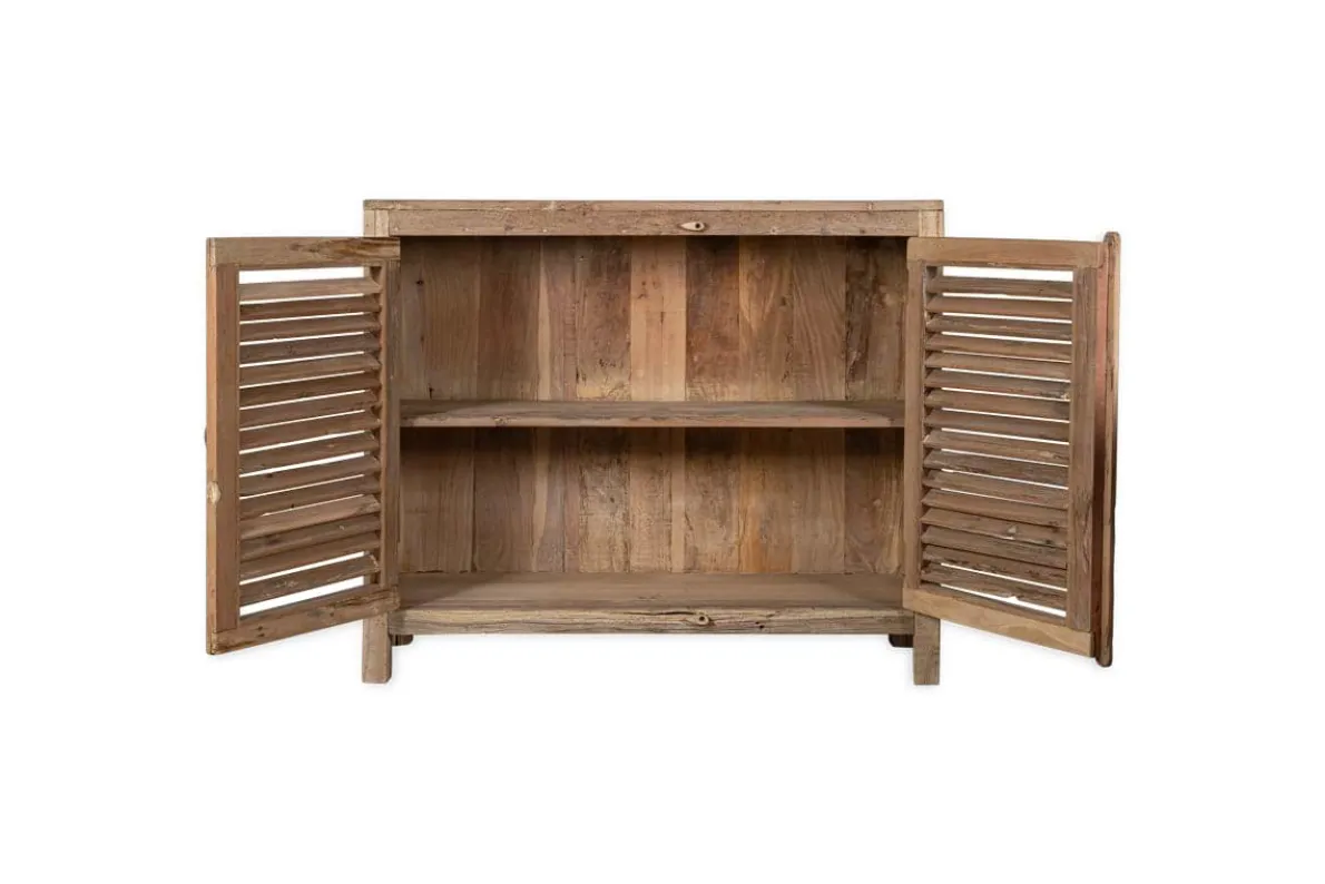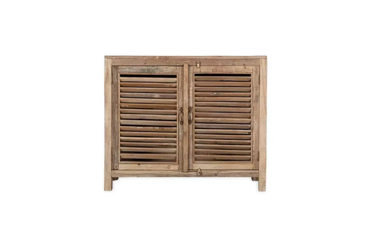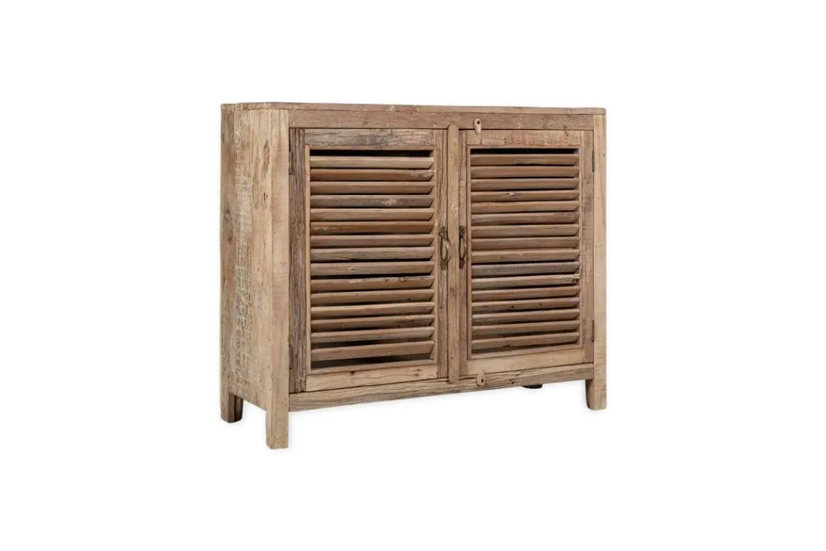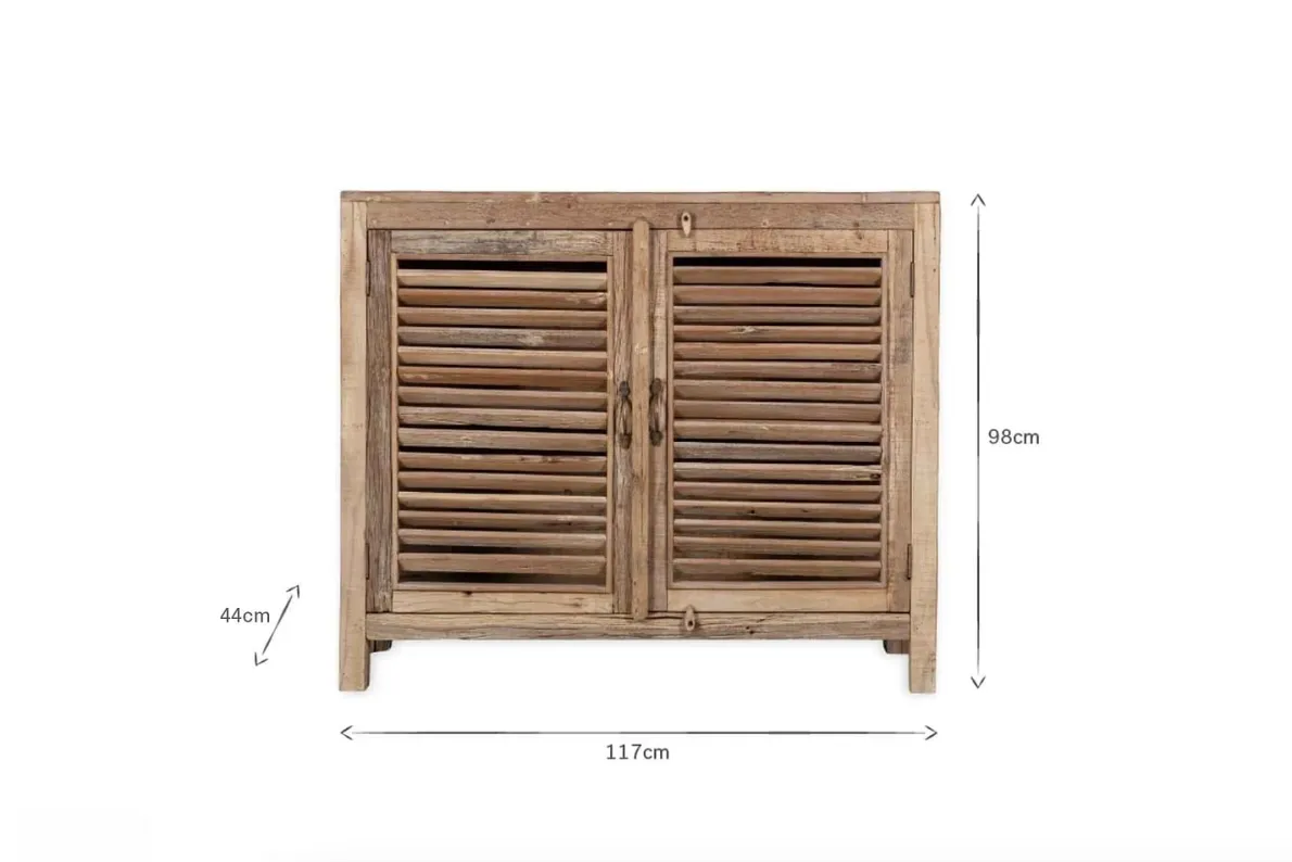 The Ibo collection celebrates the versatility and creativity of Indian artisan craftsmanship, as perfectly demonstrated by our Ibo sideboard. Made from rustic reclaimed wood, this piece spent a former life travelling on the exterior of an Indian truck, and has been re-purposed to create a stylish sideboard. The weathered tone and imperfections of the materials comes through beautifully, with every piece showing unique variations in the tone of the wood, authentic rough textures, and knots and splits in the grain which only add to the rustic charm. Strong and sturdy, the design is stylish yet simple, and is ideal for storing items in a living room or dining room. The pale, natural finish that creates a laidback look that fits well into a relaxed decor.