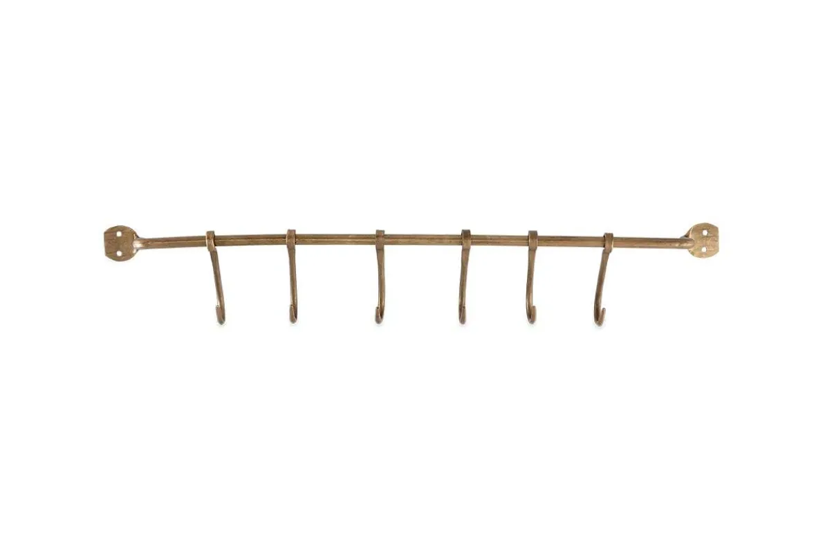 Simple, elegant and practical, our Ikomo hooks have a stylish solid brass bar and hooks, finished with an attractive antique effect. Perfect for all kinds of hanging storage, from kitchen to bathroom.